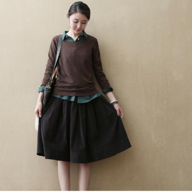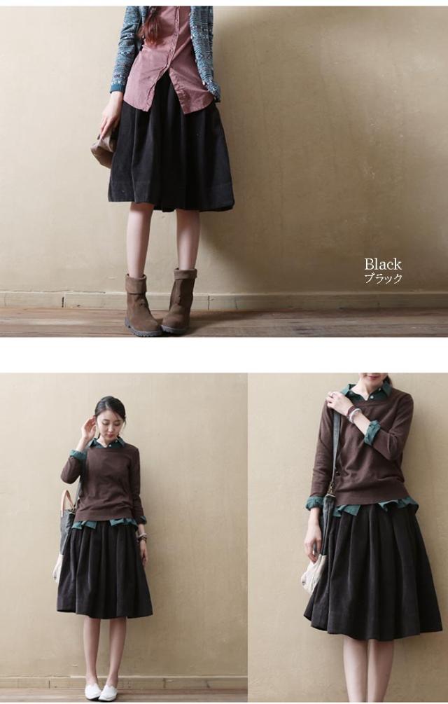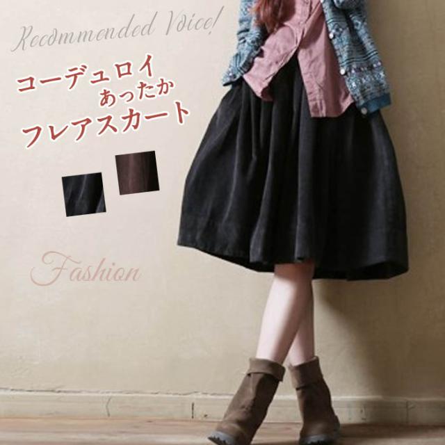 キーワード スカート レディース ボトムス 膝丈 ひざ丈 フレアスカート フレア Aラインスカート コーデュロイスカート ウエストゴム ゴム 大きいサイズ ゆったり 無地 秋冬