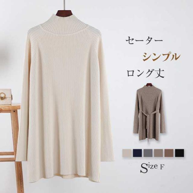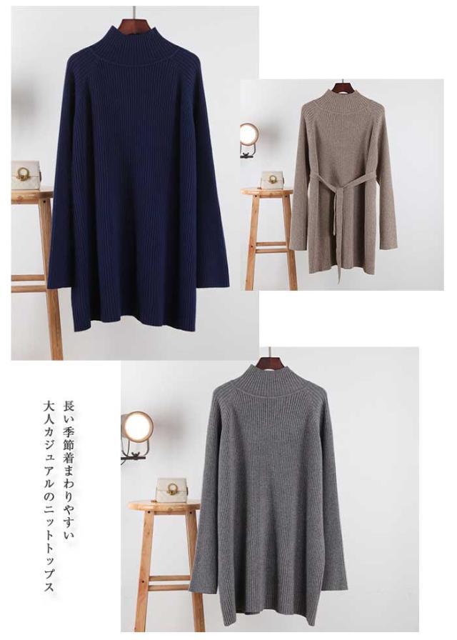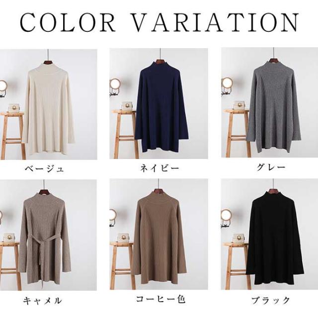 キーワード ニット セーター レディース ロング 秋 冬 ハイネック ニットワンピース 厚手 リブニット 長袖 セーター ワンピース ベルト付き カジュアル ニットセーター 暖かい シンプル プルオーバー無地 トップス 秋 冬 春 秋冬物 通勤 体型カバー 大人 上品 きれいめ 着回し 定番 送料無料