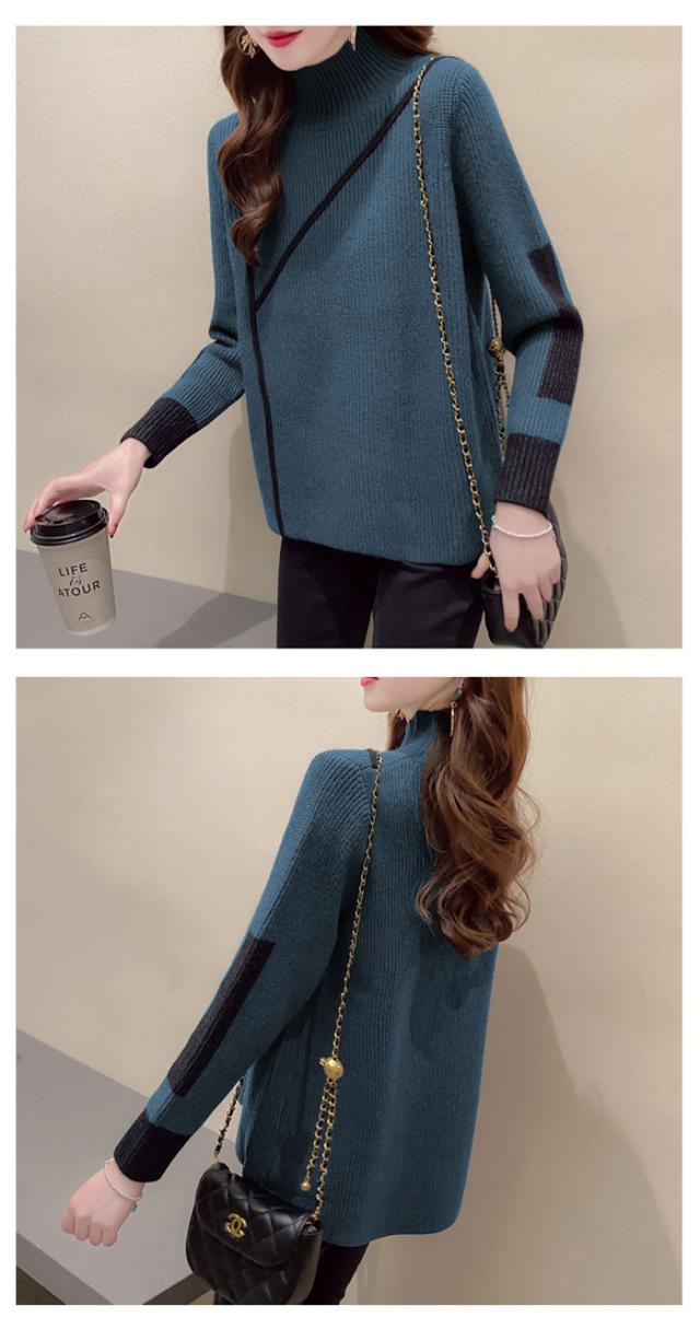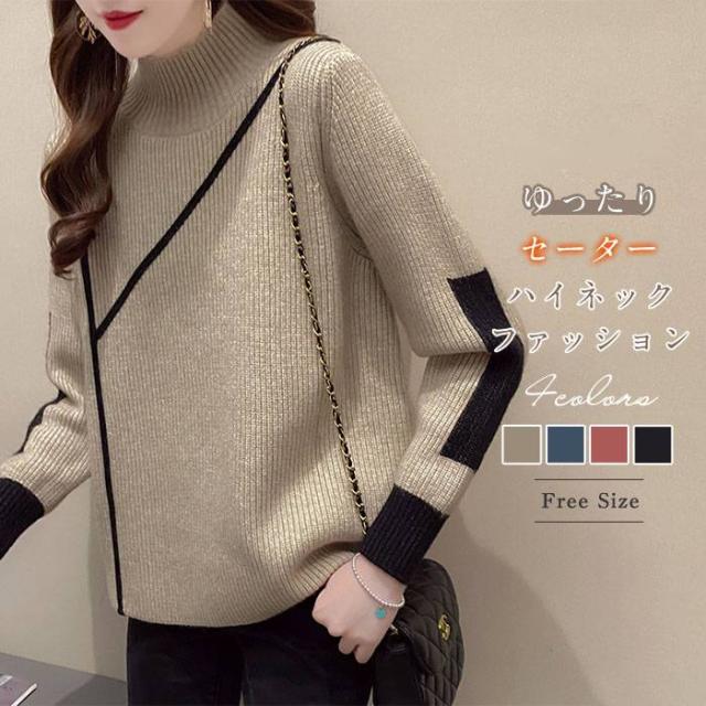 キーワード リブニット ハイネック セーター レディース 秋冬 配色 ニット セーター ニットセーター レディース ハイネック クルーネック ニット プルオーバー トップス アシンメトリー上品 冬 春 通勤 体型カバー 長袖 大人 きれいめ ファッション おしゃれ カジュアル 送料無料