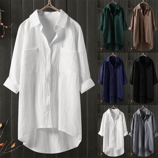キーワード 送料無料 シャツ ブラウス レディース 長袖 ミドル丈 韓国風 綿麻混 ゆったり リネン長袖 スタンダードカラー シャツブラウス リネンシャツ 大きいサイズ オフィス コットンリネン シャツ トップス レディース シンプル 綿麻 綿 麻 秋 冬 春 裾前後差 通勤 上品