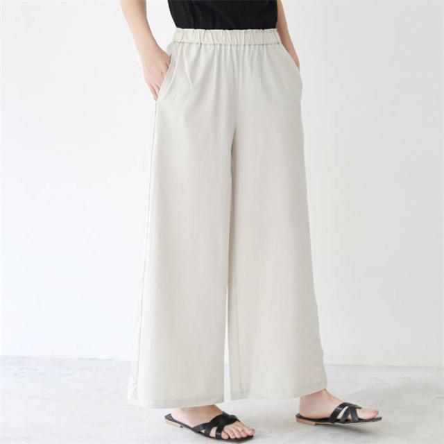 キーワード パンツ レディース 春夏 ロング丈 ボトムス レディースパンツ ワイドパンツ ロングパンツ リネン コットン ワイド ロング 春 夏 秋 美脚 シルエット 大人 おしゃれ 綿麻混紡 体型カバー ギャザー リラックス 落ち感 着痩せ 着心地 外出 お出かけ 通勤 通学 日常 ディリー