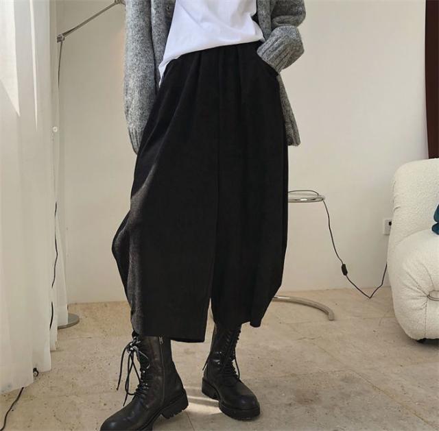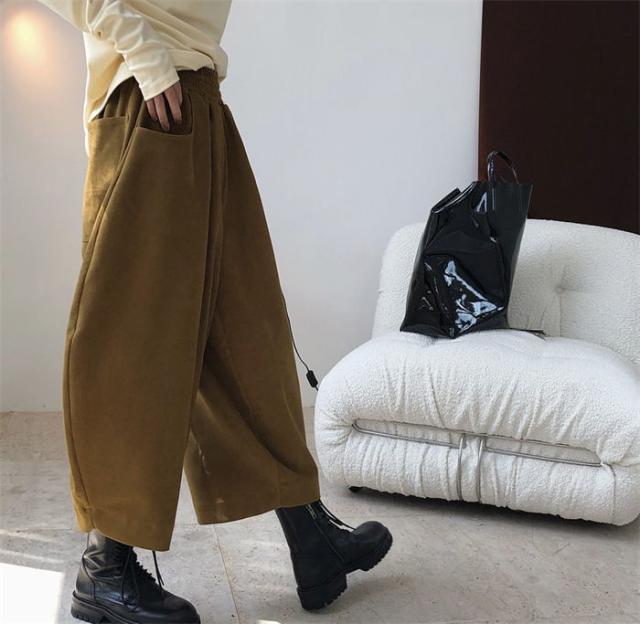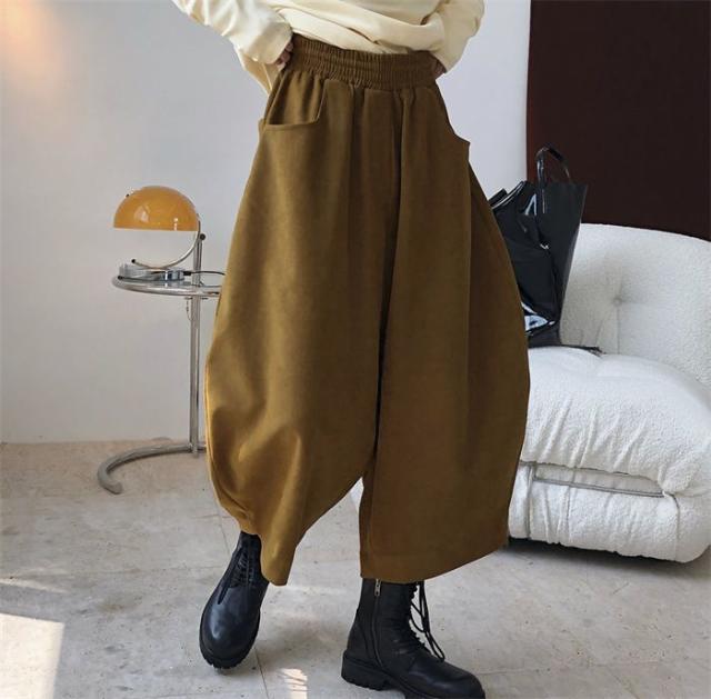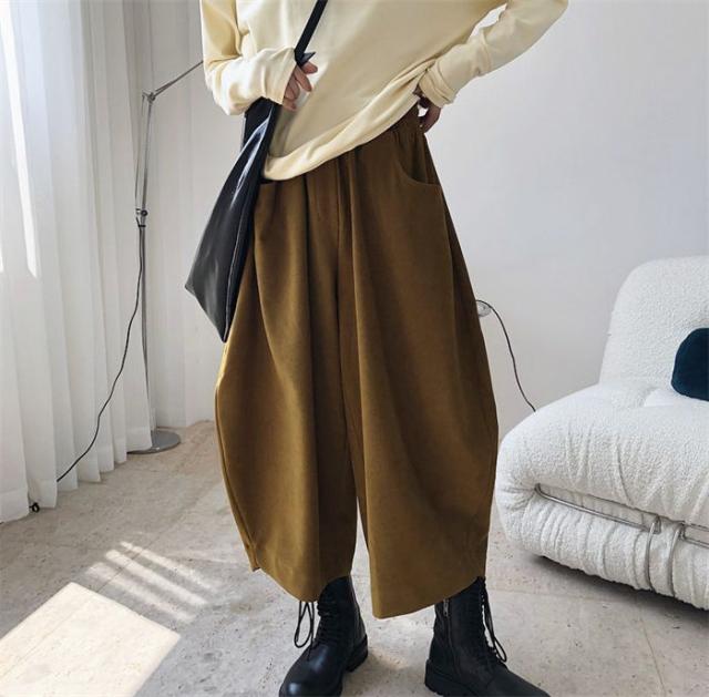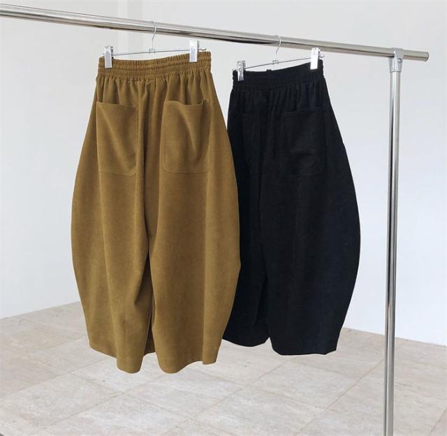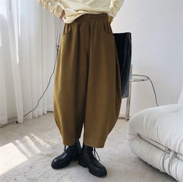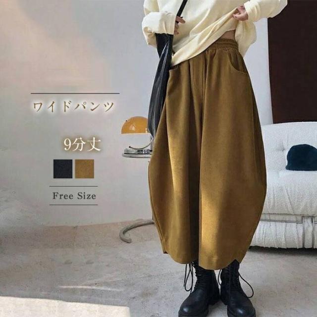 新作 パンツ レディース ゆったり ウエストゴム ワイドパンツ レディース 秋 冬 バギー パンツ オーバーサイズ 9分丈 ハロンパンツ ボトムス 体型カバー 無地 着痩せ 美脚