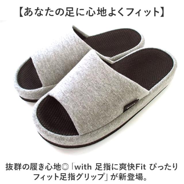 スリッパ 室内 おしゃれ 通販 with 足指に爽快Fit ぴったりフィット 足指グリップ 前あきスリッパ 前開きスリッパ ルームスリッパ ルームサンダル ルームシューズ 室内履き サンダル 社内履き オフィスサンダル おしゃれスリッパ メンズ レディース