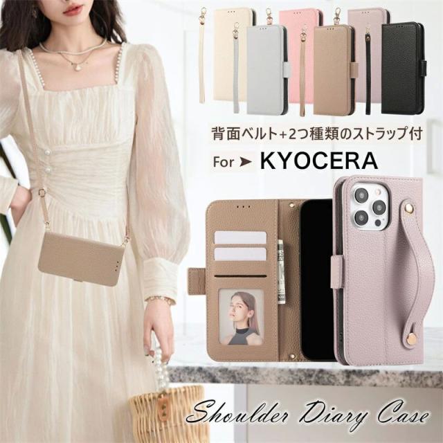 グリップループ付き! スマホケース手帳型 かんたんスマホ3 2+ G06 SX3 手帳型ケース ショルダー 京セラ KYOCERA あんしんスマホ KY-51B BASIO4 KYV47 スマホケースショルダー ベルト付き ハンドストラップ付き 韓国 大人 シンプル 可愛い おしゃれ かわいい 斜めがけ