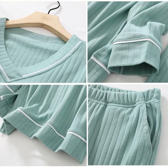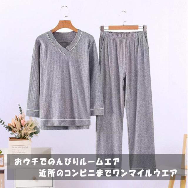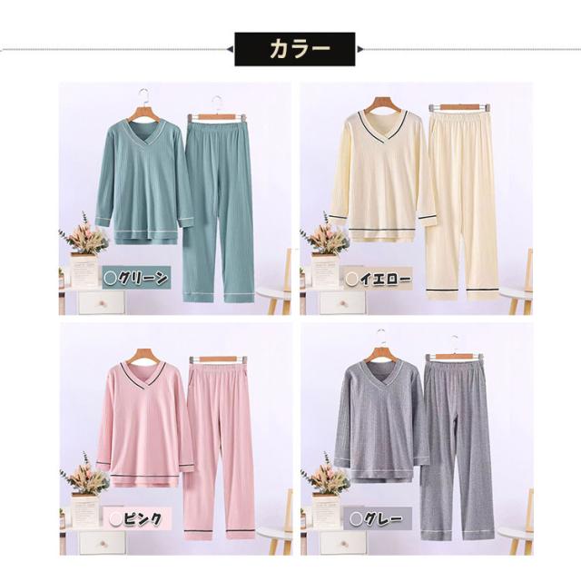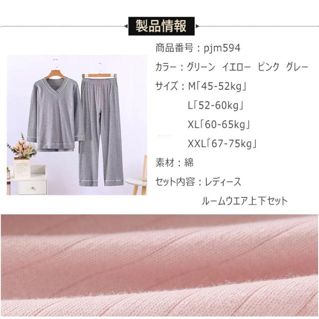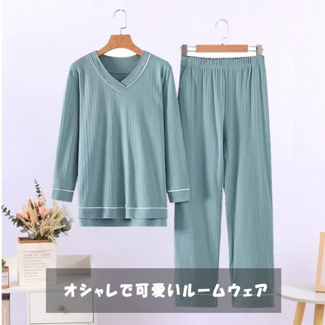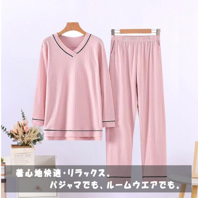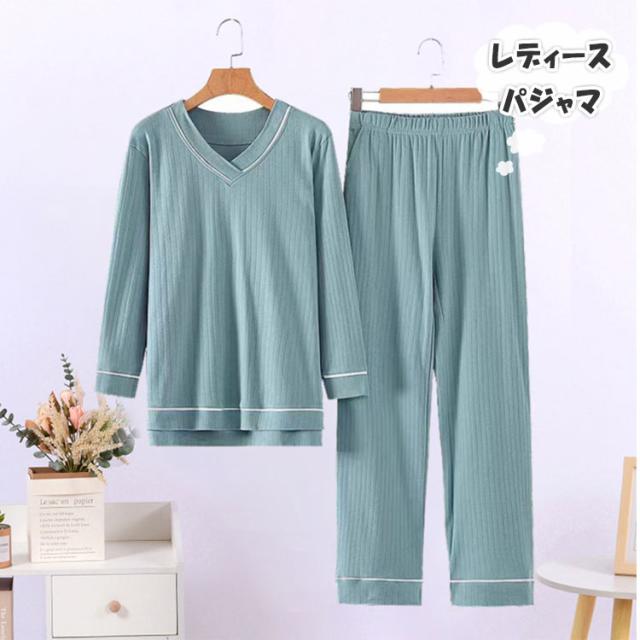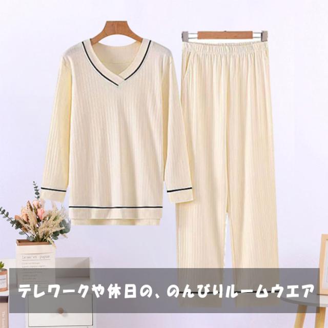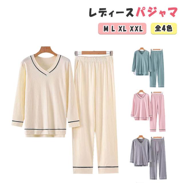 ルームウエア 上下セット レディース ワンマイルウエア パジャマ 長袖 九分丈ズボン 部屋着 寝巻き 綿 柔らか ゆったり 素肌感覚 通気性 ムレにくい 優しい着心地 春 秋 ナイトウエア Vネック プルオーバー ウエストゴム ねまき 寝間着 誕生日 プレゼント