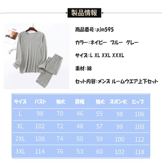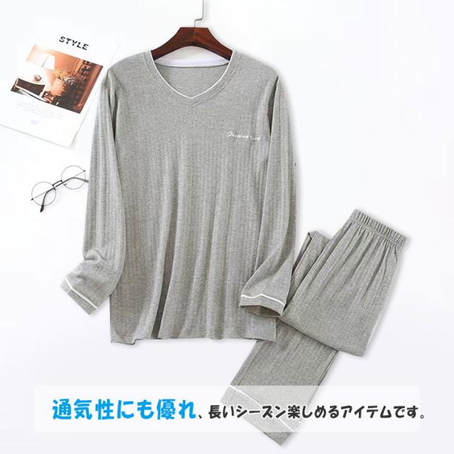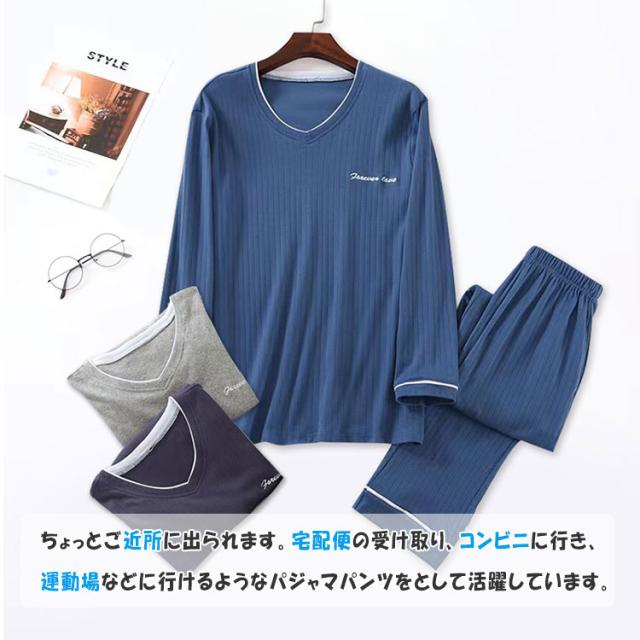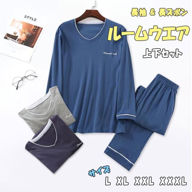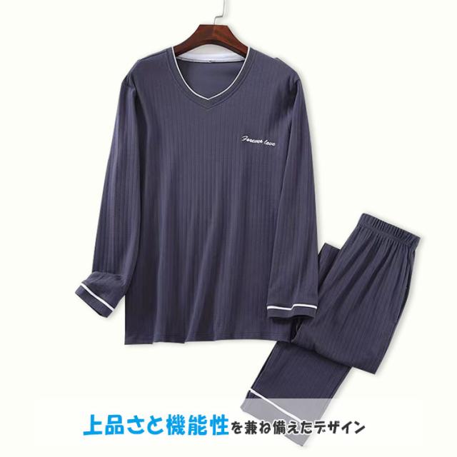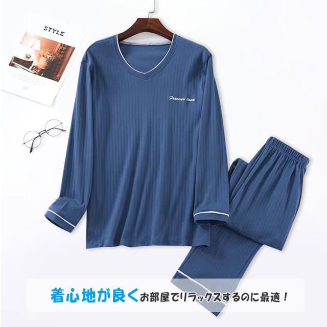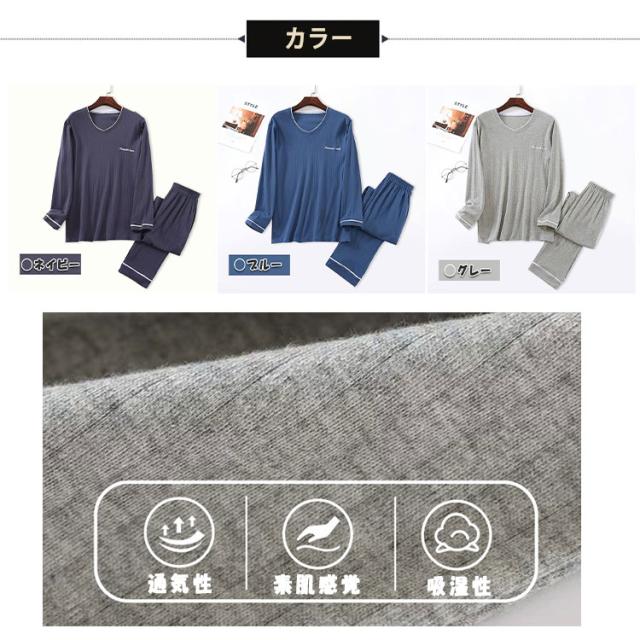 ルームウエア メンズ 上下セット 長袖 長ズボン ワンマイルウエア パジャマ 綿 柔らか ゆったり 素肌感覚 通気性 吸湿性 ムレにくい 爽やか 優しい着心地 春 秋 部屋着 寝巻き ナイトウエア プルオーバー ウエストゴム ねまき 誕生日 プレゼント