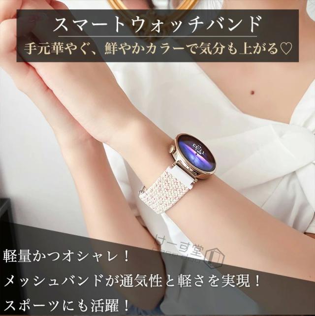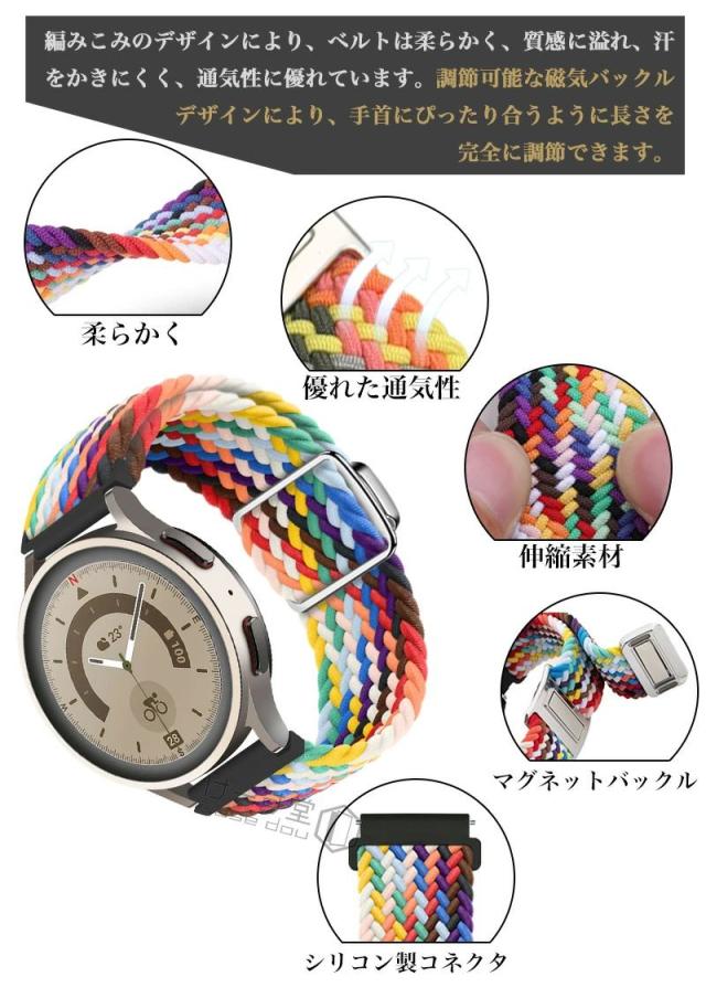 HUAWEI WATCH GT 4 41mm バンド ベルト 編み込み ファーウェイ ウォッチ GT4 ラグ幅 18mm 交換バンド ベルト メッシュ ナイロン時計バンド huawei watch gt4 腕時計 バンド 編組バンド ナイロン製 伸縮 レディース メンズ 柔らかい 軽量 虹色 マグネット開閉 通気性が良い