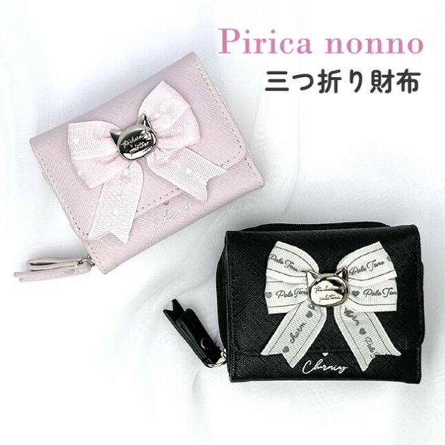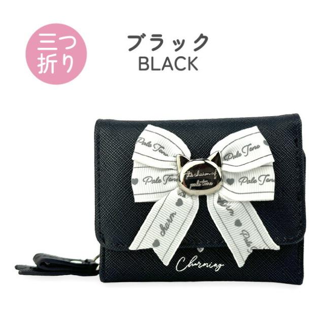 子供 財布 女の子 小学生 三つ折り財布 かわいい おしゃれ mdu-102 Pirica nonno ピリカノンノ キャットリボン ミニラウンド財布 ミニ財布 コンパクト財布 さいふ りぼん リボン 猫 ネコ ねこ 女子 ガールズ 中学生 小学校 低学年 高学年 旅行 修学旅行 通学 通塾 黒 ピンク