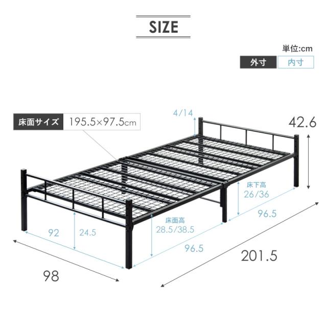 こだわりの頑丈設計 シンプル パイプベッド シングル 【送料無料】 アイアンベッド ヘッドボードなし スチールベッド ベッドフレームのみ 高さ調整 一人暮らし 黒 ブラック 白 ホワイト