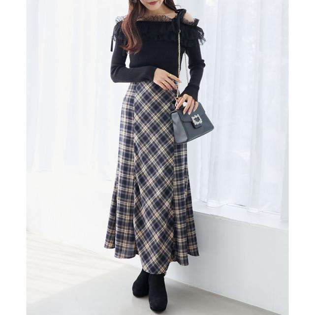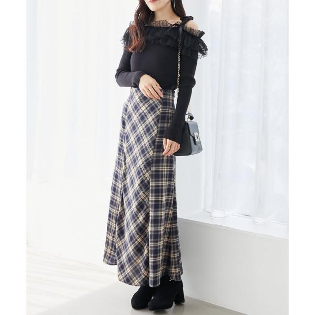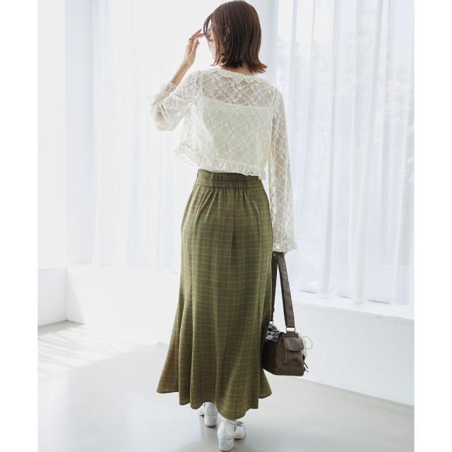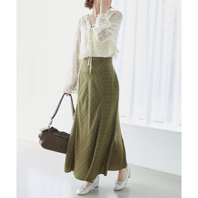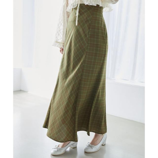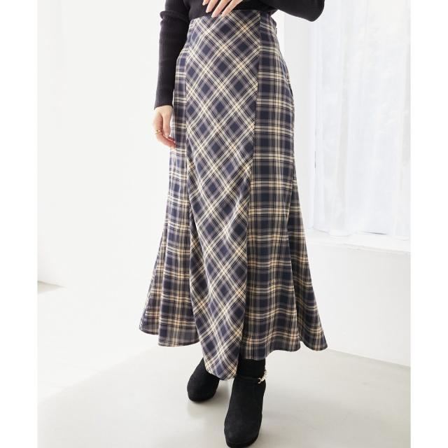 シーズンムード溢れるチェック柄のマーメイドスカート。