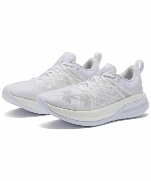 UA独自のアッパーテクノロジー、ワープアッパーは、水平と垂直のテープラインが足の上で多くのシートベルトの役割を果たし、足の固定と軽量性を提供する