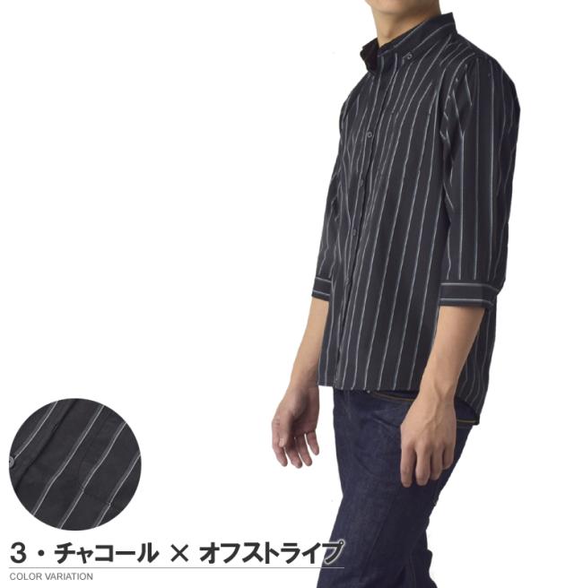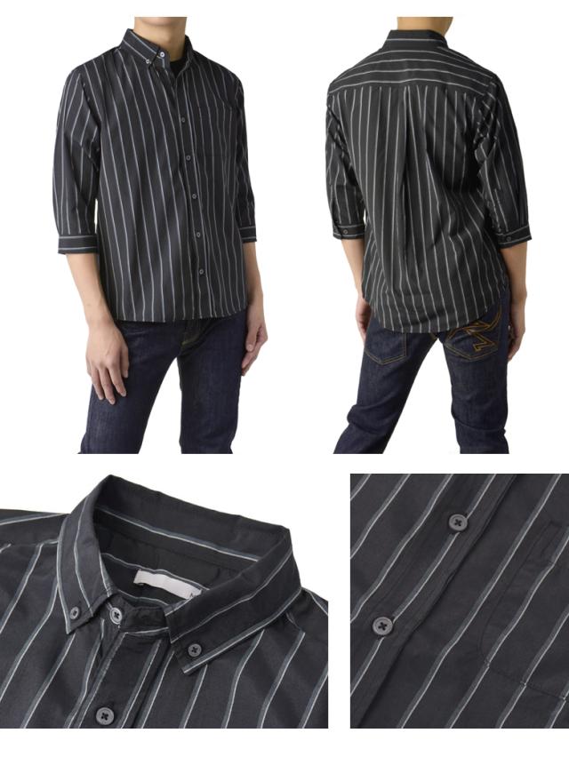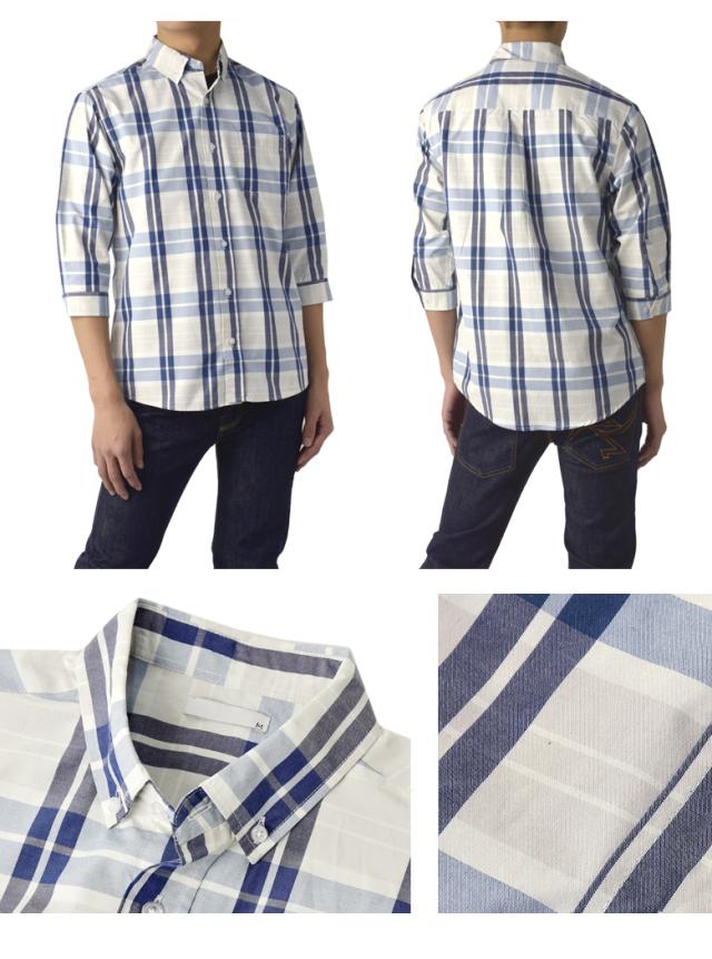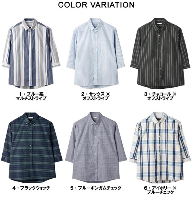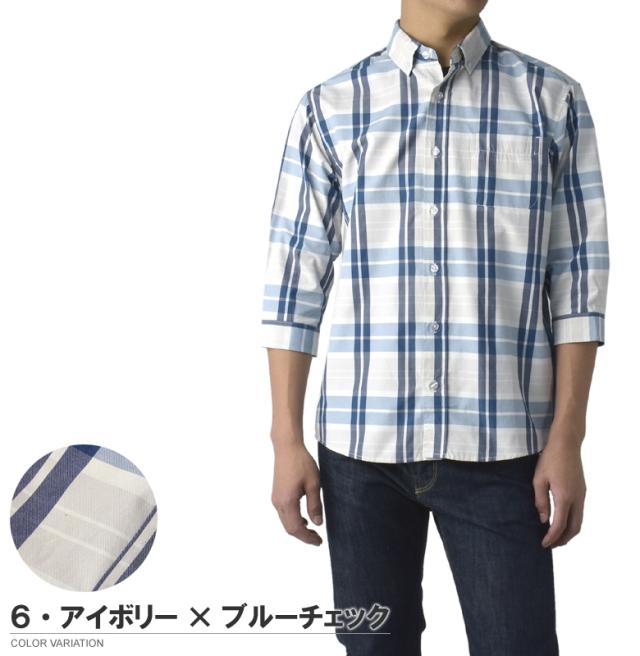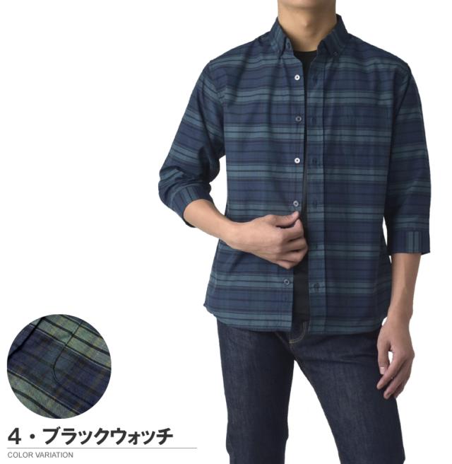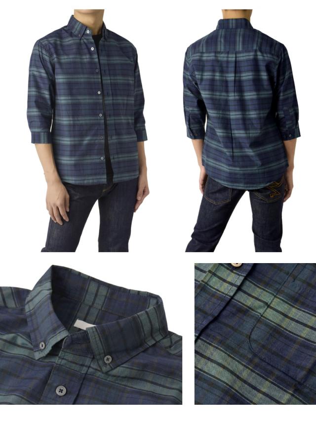 メンズ 7分袖 ボタンダウンシャツ カジュアル コットン 綿混 イージーケア ハンパ袖 チェック ストライプ ギンガムチェック ブラックウォッチ【B3R】【パケ2】