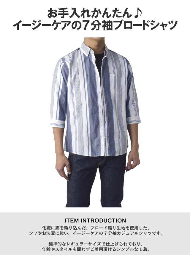 送料無料☆お手入れかんたん♪イージーケアの7分袖ブロードシャツ