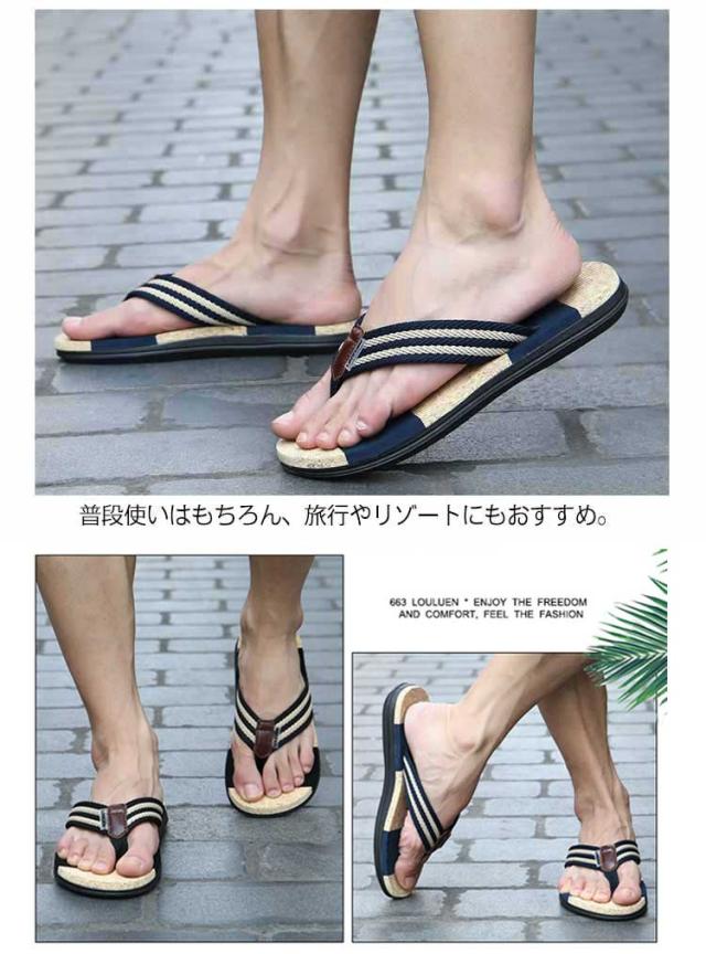 スリッパ 男性 トングサンダル お洒落 ビーチサンダル カジュアル 旅行 サンダル ストライプ 大きいサイズ 夏 痛くない 疲れにくい 滑り止め 海水浴 アウトドア 軽量 トングサンダル 水陸両用