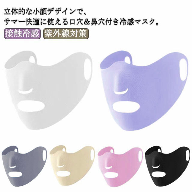 | 立体的な小顔デザインで、サマー快適に使える口穴&鼻穴付き冷感マスク。 夏にはUVカット紫外線を対策します。 呼気孔があり、息苦しくない、激しく動いてもずれ難くなっております。 洗って繰り返し使える速乾生地。ひんやり快適な使い心地。 | |