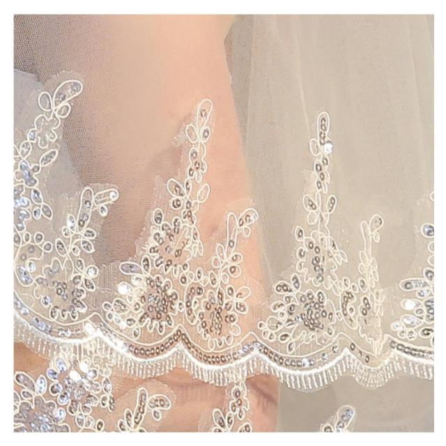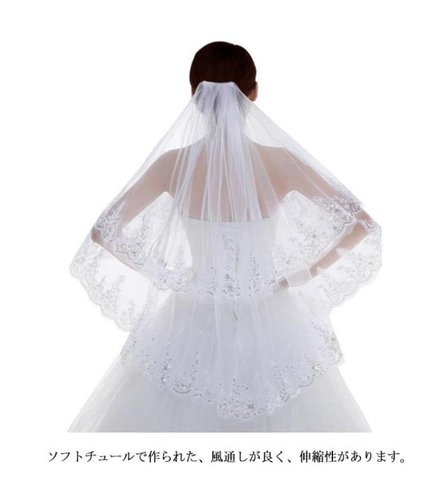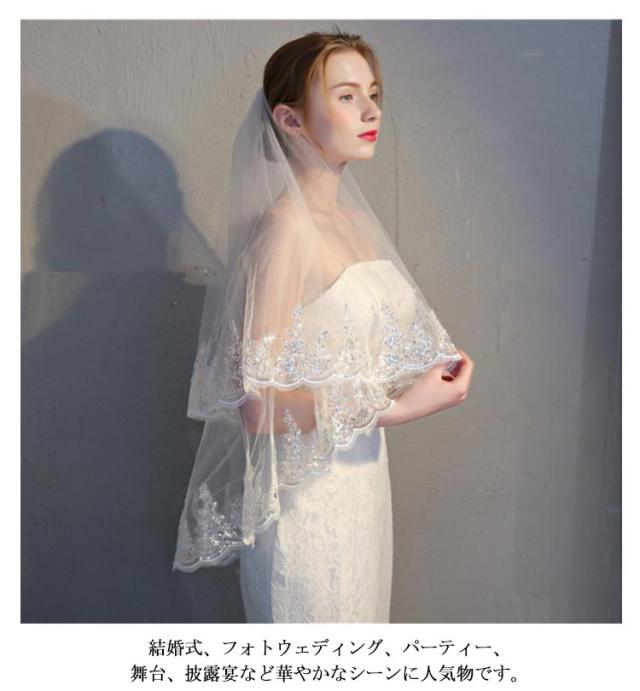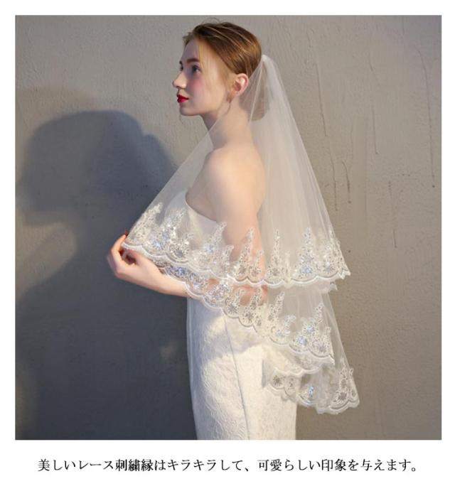 花嫁ベール ブライダル 結婚式 2層チュール 華やか 花柄 レース刺繍 コーム付き ウェディングベール 二次会 ヘッドドレス 撮影 パーティー ウェディングベール カラードレス シンプル 送料無料