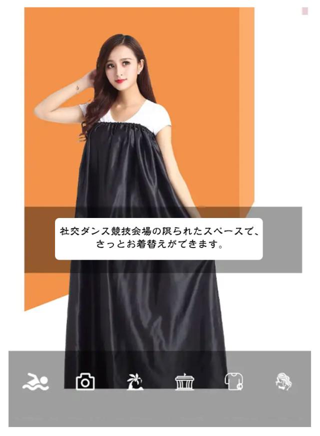 | 災害時の簡易更衣室代わりに防災グッツとしても役立ちます。 首元がゴム仕様になっているのと生地面積も広いのですぐに着替えやすい。 男女兼用タイプで、お子様から大人まで使用可能です。 社交ダンス競技会場の限られたスペースで、さっとお着替えができます。 | |