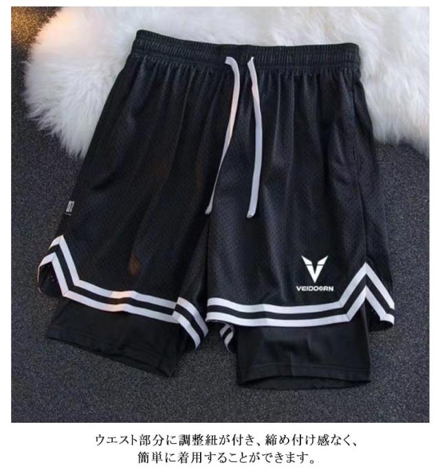 メンズ インナー付き インナー付きランニングパンツ 通気 インナー付き ジャージ ショートパンツ トレーニングウェア ハーフパンツ 半ズボン 吸汗速乾 短パン バスケパンツ ジムウェア 短め ジム スポーツウェア ランニングウェア 機能性 スパッツ