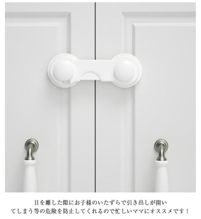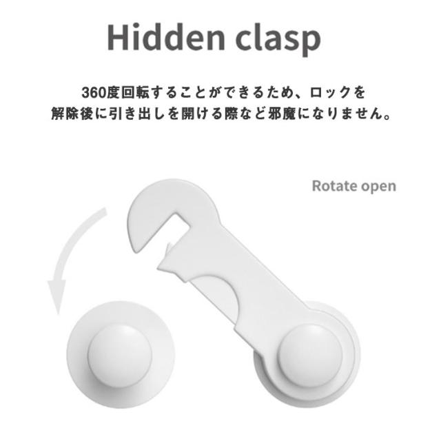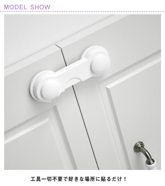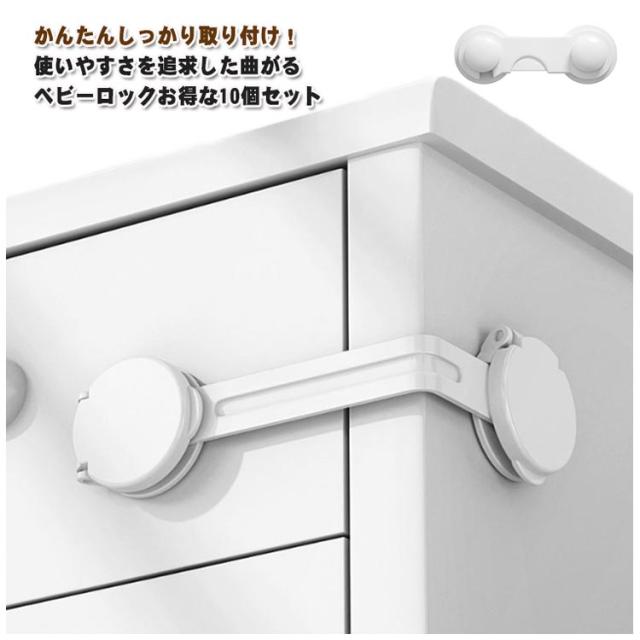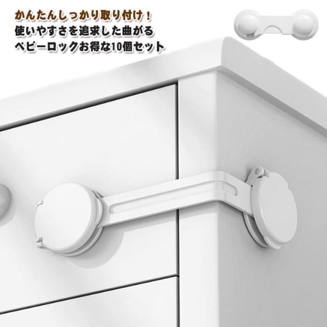 | かんたんしっかり取り付け!使いやすさを追求した曲がるベビーロックお得な10個セット 360度回転することができるため、ロックを解除後に引き出しを開ける際など邪魔になりません。 工具一切不要で好きな場所に貼るだけ! ロック解除も片手で出来るからお子様を抱っこしたままでも、解除可能です! 目を離した隙にお子様のいたずらで引き出しが開いてしまう等の危険を防止してくれるので忙しいママにオススメです! 粘着テープで貼りつけるだけなので、引き出し、ドア、冷蔵庫、洗濯機、便器など場所を選ばず簡単に設置していただけます。 | |