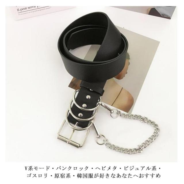 | PUレザーの3連リングベルトとウォレットチェーンの2点セット 今季大注目のトレンドITEM! レディース、メンズともに使える男女兼用ユニセックス。 V系モード・パンクロック・ヘビメタ・ビジュアル系・ゴスロリ・原宿系・韓国服が好きなあなたへおすすめ 特徴的なデザインで、普段のファッションにアクセントを加えます。量産型、地雷系、パンクファッションにピッタリです。 | |