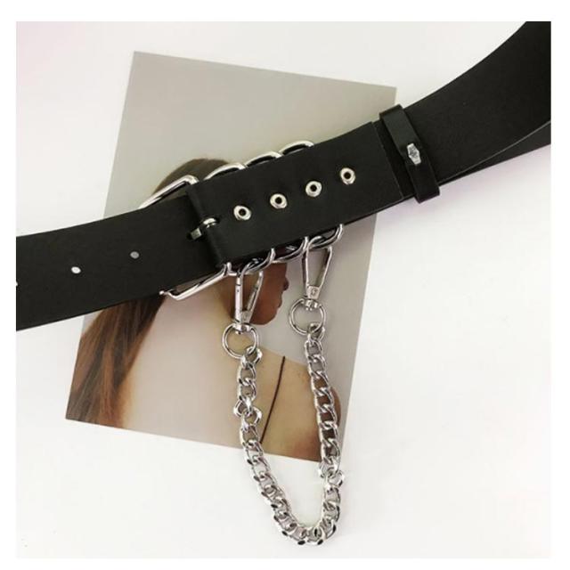 ワイド 地雷系 量産型 ロリータ ブラック 黒 モード系 バックル ウォレットチェーン 衣装 ウエストベルト ベルト ダンス 病みかわ 原宿系 レディース ゴスロリ かっこいい V系 3連リング