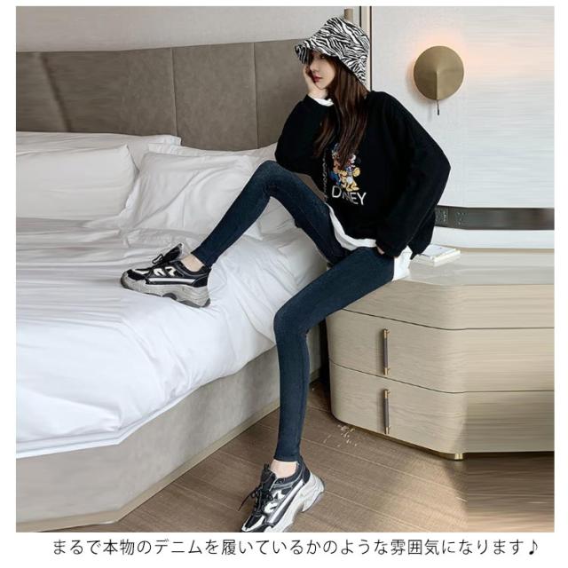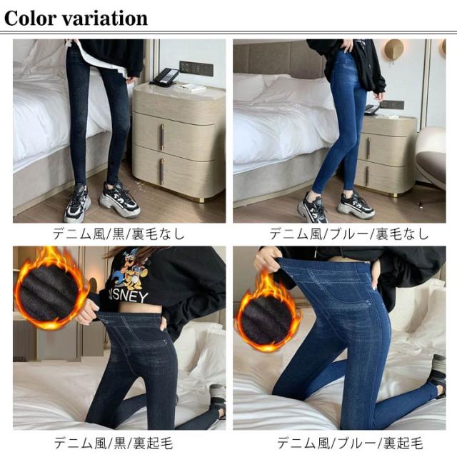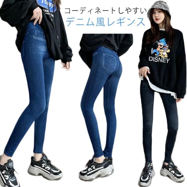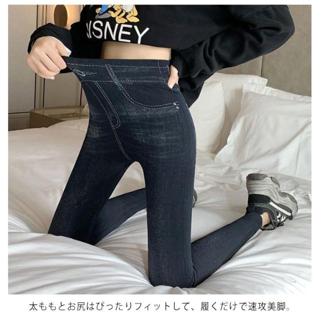レギンスパンツ ハイウエスト デニム風 無地 ストレッチ デニム風パンツ ロングパンツ 秋冬 レギパン レディース 春 暖かい ヨガやスポーツに 大人 デニム風 女性 美脚 通勤 通学 ボトムス おしゃれ カジュアル