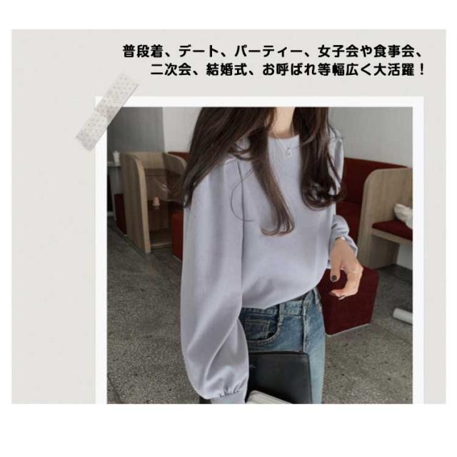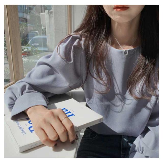 丸襟 トップス シャツ ブラウス 秋 オフィス カジュアル レディース おしゃれ 長袖 パフスリーブ 襟なし 可愛い 薄手 秋物 ゆったり 長袖tシャツ トップス キレイめ 無地 透けない カットソー カジュアル 通勤 大人 オフィス