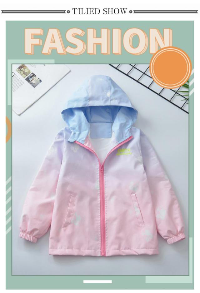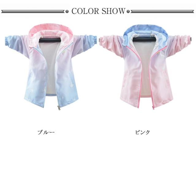 グラデーション 子供服 女の子 春 秋 ジュニア ウインドブレーカー ジップアップパーカー キッズ アウター 薄手 お洒落 ゆったり フード付き ジャケット 上着 キッズ ブルゾン ガールズ ジャンパー カジュアル