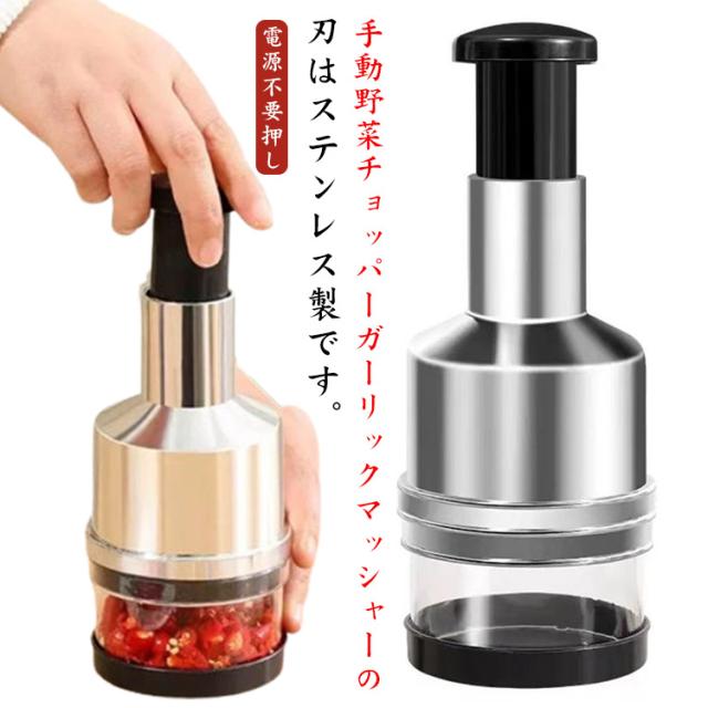 みじん切り器 簡単操作 手動フードチョッパー にんにく みじん切り器 電源不要押し 軽量 にんにく 水洗い可能 掃除簡単 野菜にんにくカッター