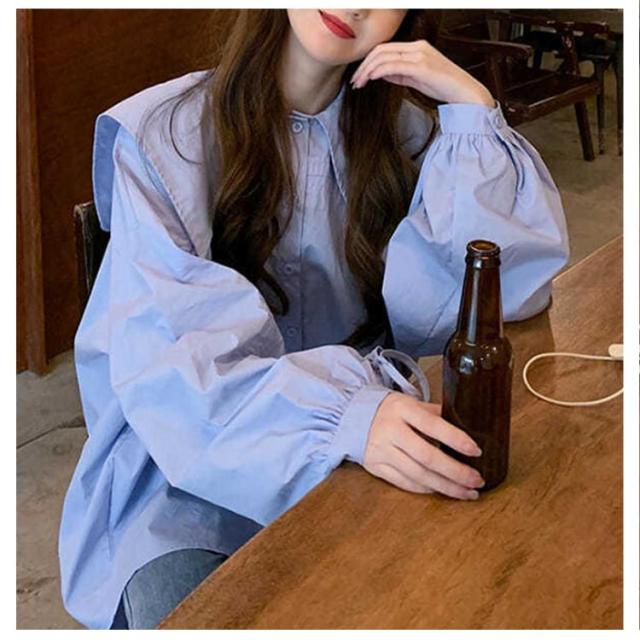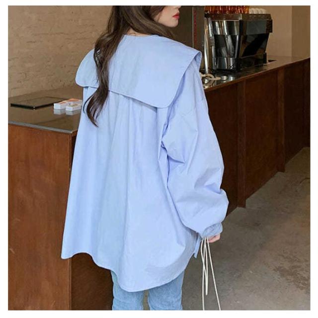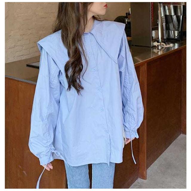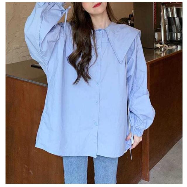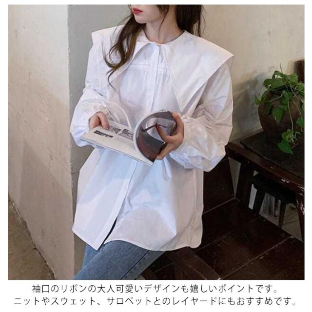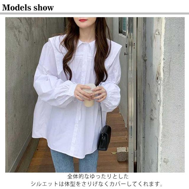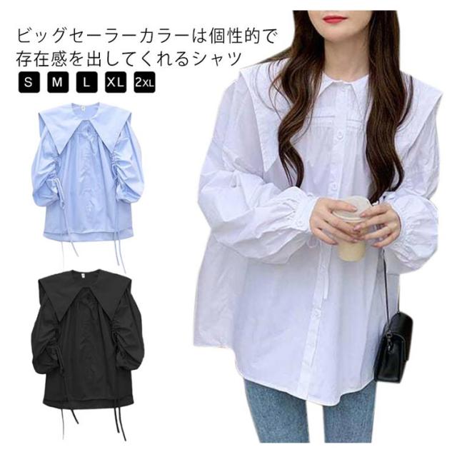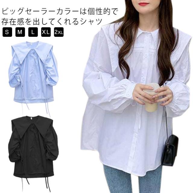 ブラウス シャツ かわいい おしゃれ 長袖 ビッグカラー 体型カバー 春秋 薄手 ブラウス 大きい襟 ボリューム ゆったり セーラーカラー トップス 無地 大きいサイズ カジュアル 春秋 ビック襟 シンプル かわいい 大人 女性 通勤 通学 ギフト