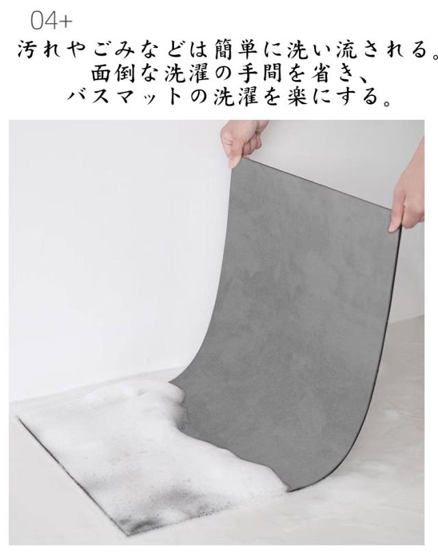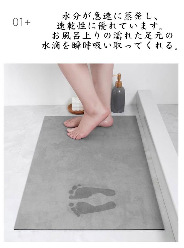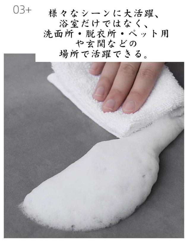 | バスマットマットの表面の超極細繊維透水層は通気性が強くて、水分が急速に蒸発し、速乾性に優れています。お風呂上りの濡れた足元の水滴を瞬時吸い取ってくれる。 柔らかくて踏み心地も最適です!ベタベタの足で乗っても、すぐにサラッとしています。 バスマットの裏面は滑りにくい天然ゴム製なので、強く地面に吸着できますので、お年寄りや子どもの滑や転倒を防ぐことができます。 様々なシーンに大活躍、浴室だけではなく、洗面所・脱衣所・ペット用や玄関などの場所で活躍できる。 汚れやごみなどは簡単に洗い流される。面倒な洗濯の手間を省き、バスマットの洗濯を楽にする。 | |