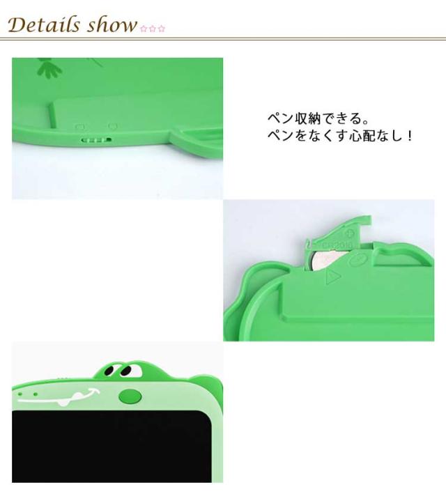 | お絵描きボード ワンタッチ消去ボタン。ボタン一つで簡単に消去ができます 描いたものを残したいときはロックをON 鉛筆のような書き心地でお絵描きデビューに最適! ペン収納できる。ペンをなくす心配なし! 書く力が違って、線の太さが調節可能 | |