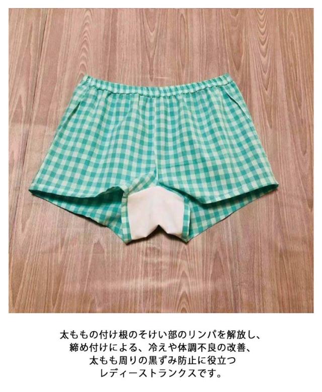 | 太もも周りを締め付けない 1枚で可愛くはけるトランクスタイプのショーツ ウエストはゴムでお腹を締めつけにくく、 裾広がりで履きやすく、脱ぎやすいパンツです。 お腹まですっぽりの深ばき丈。 マチは二重仕立てで1枚履きできます。 綿95%以上で肌ざわりも快適です。 太ももの付け根のそけい部のリンパを解放し、 締め付けによる、冷えや体調不良の改善、 太もも周りの黒ずみ防止に役立つ レディーストランクスです。 | |