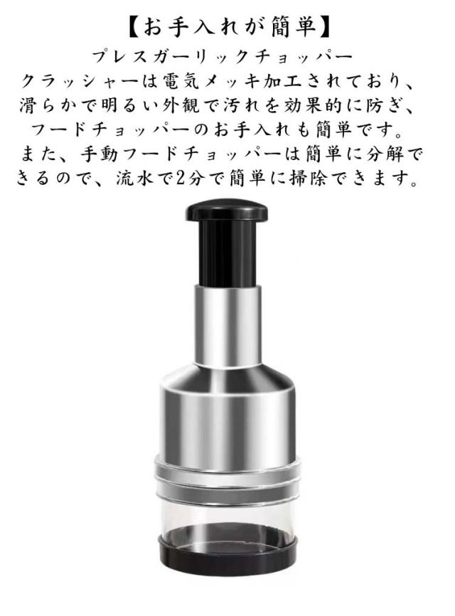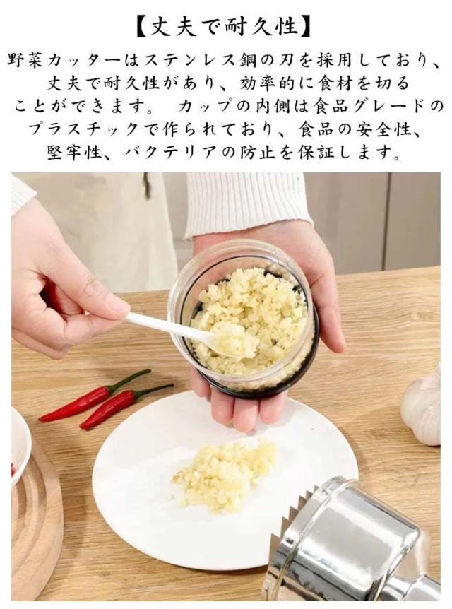 にんにく みじん切り器 軽量 手動フードチョッパー みじん切り器 電源不要押し 簡単操作 にんにく 水洗い可能 掃除簡単 野菜にんにくカッター