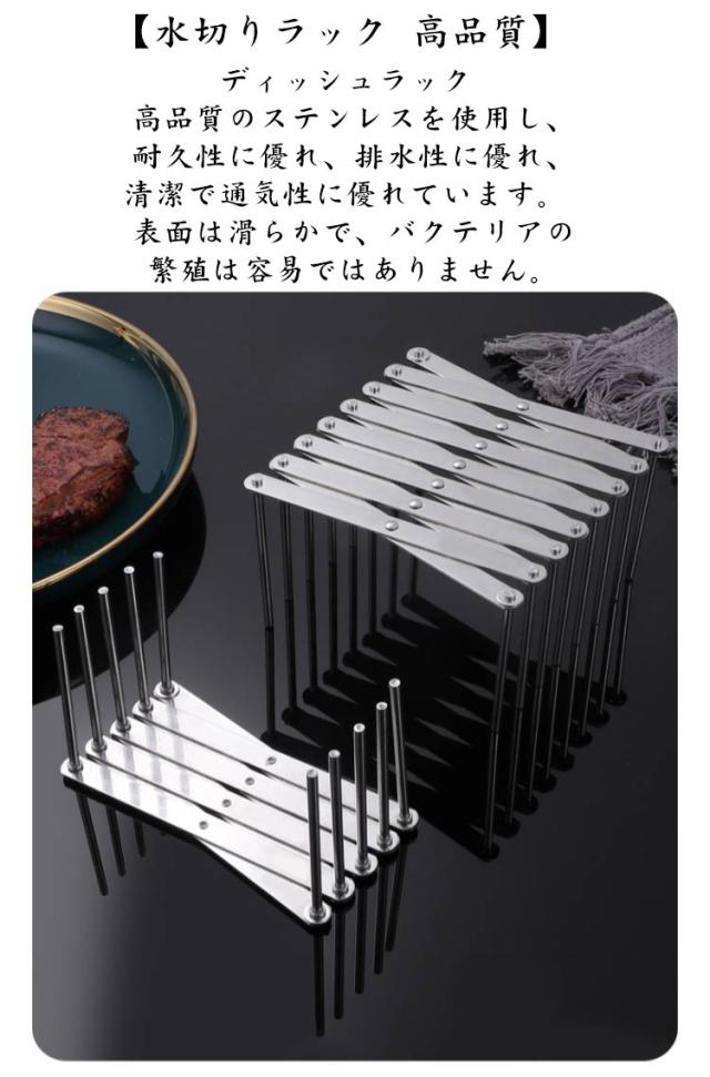 ディッシュスタンド L 水切り 皿立て 水切り S 2サイズ 食器 ディッシュラック お皿立て ディッシュスタンド 食器棚 伸縮 食器ホルダー 収納 プレート スタンド ステンレス 収納が簡単 伸縮自在 台所