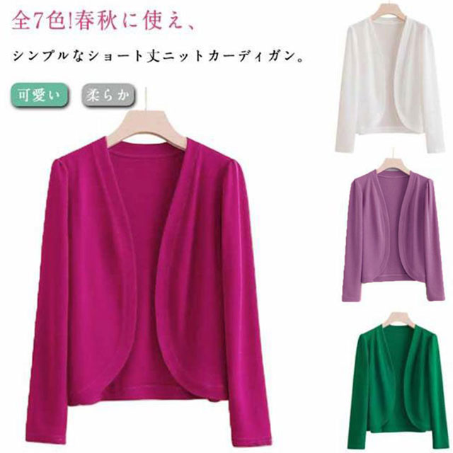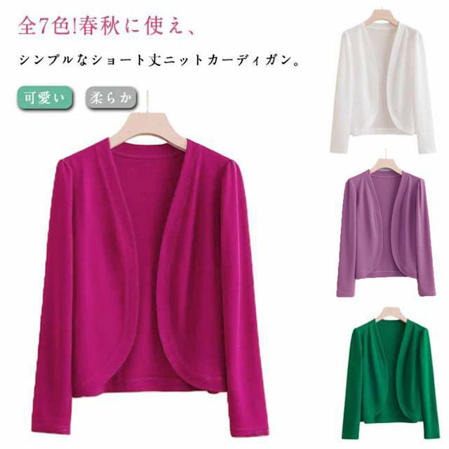 レディース ショート丈カーディガン ノーボタン 大人可愛い ニットカーディガン 羽織り 全9色!カーディガン 秋 長袖 無地 XL−6XL 大きサイズ 柔らか 着まわし トップス