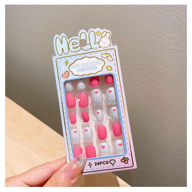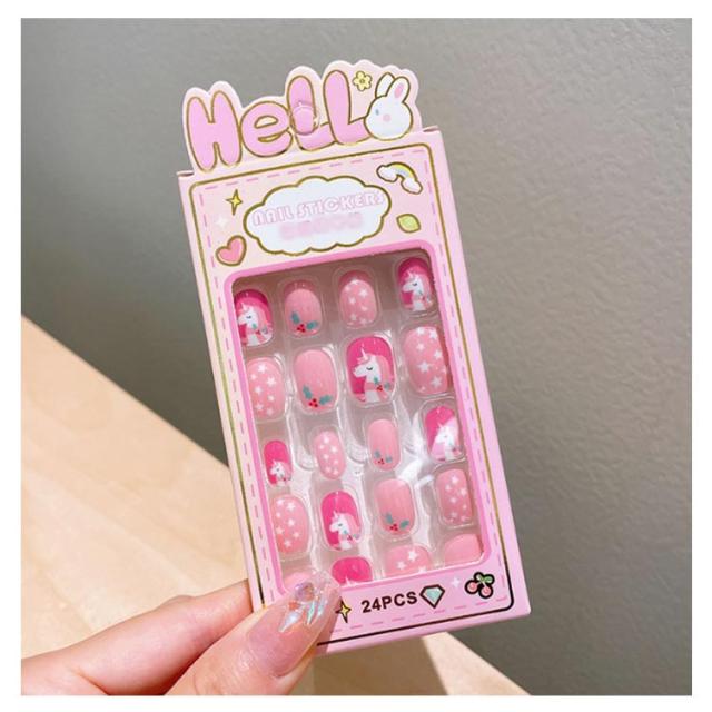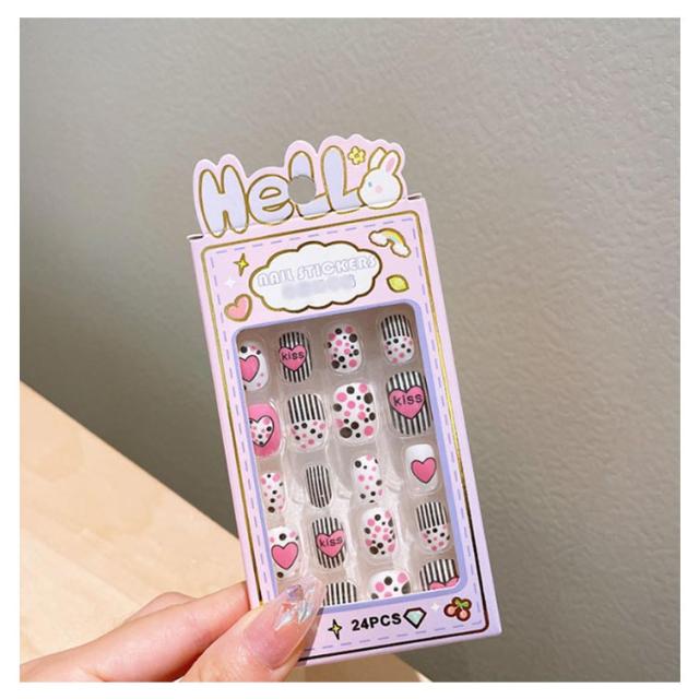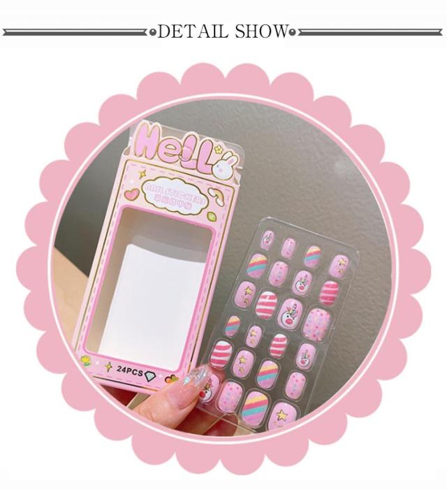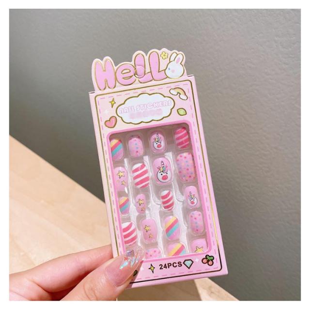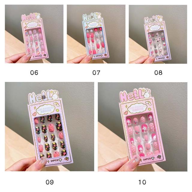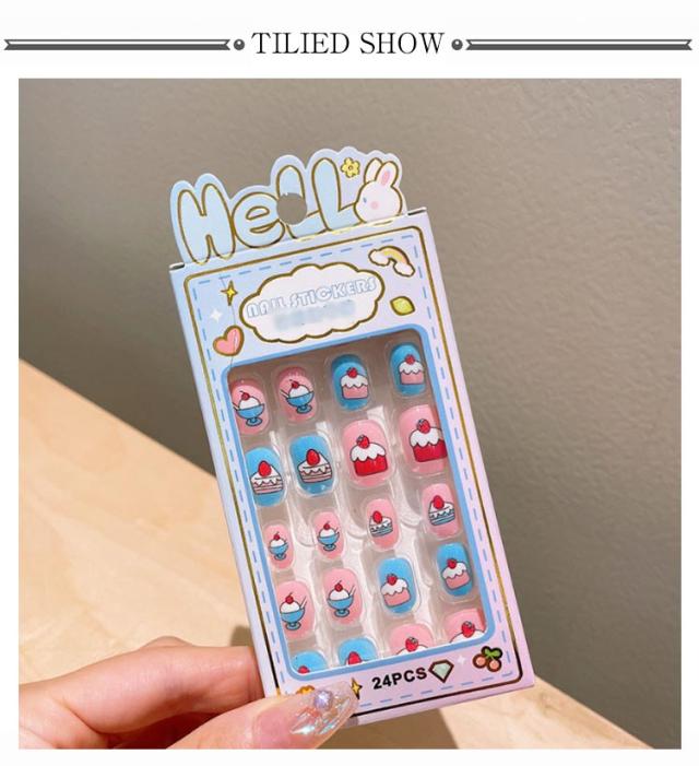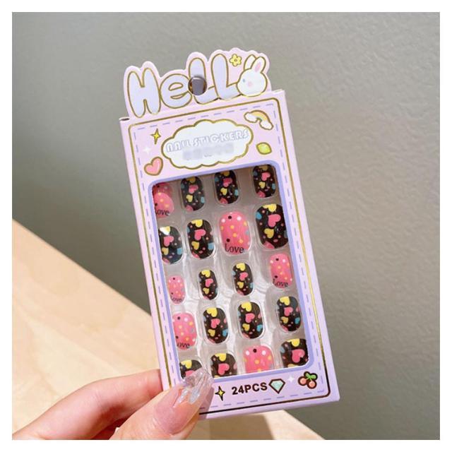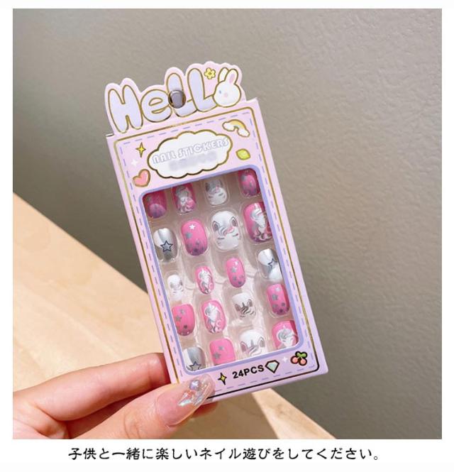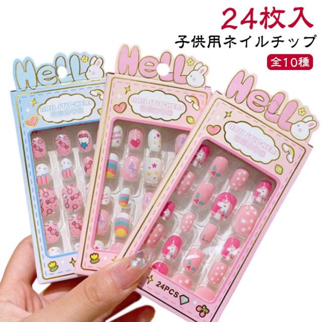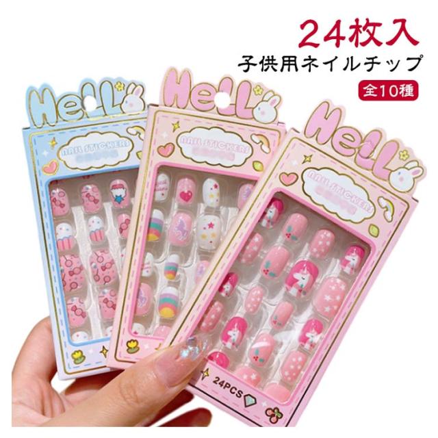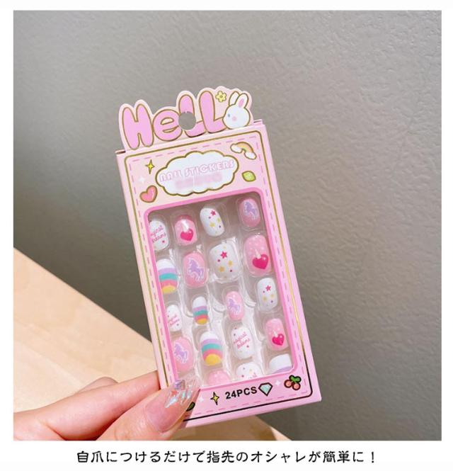 つけ爪 キッズ 24個入り 子供用 ショート ネイルチップ 貼るだけ 可愛い かわいい 子供用 誕生日 女の子 キッズ用 ジェルネイルチップ 付け爪 おしゃれ ショートラウンド こどもネイル 安全 ハロウィン 3d デコレーション ネイルチップ