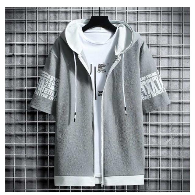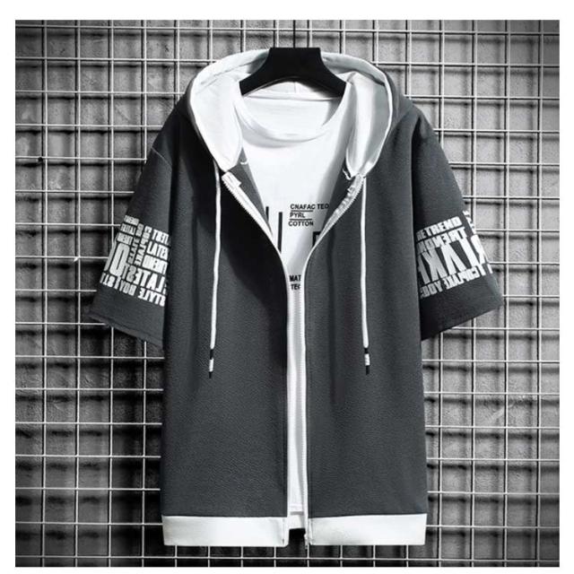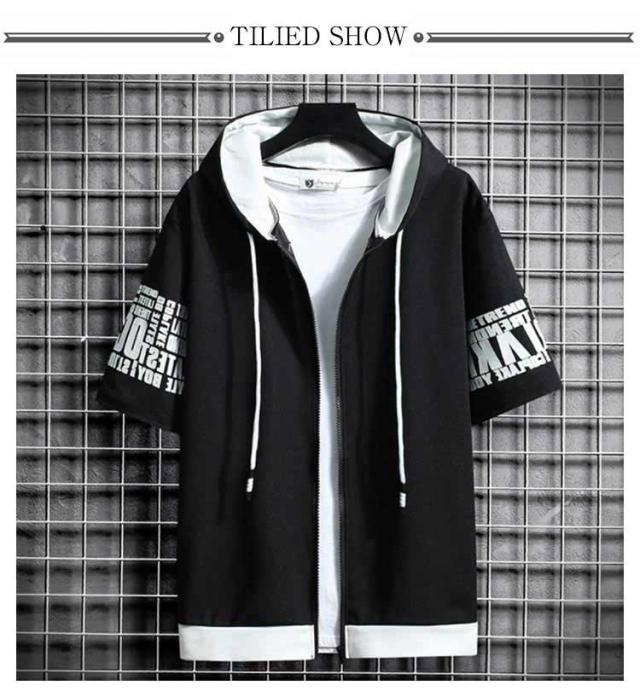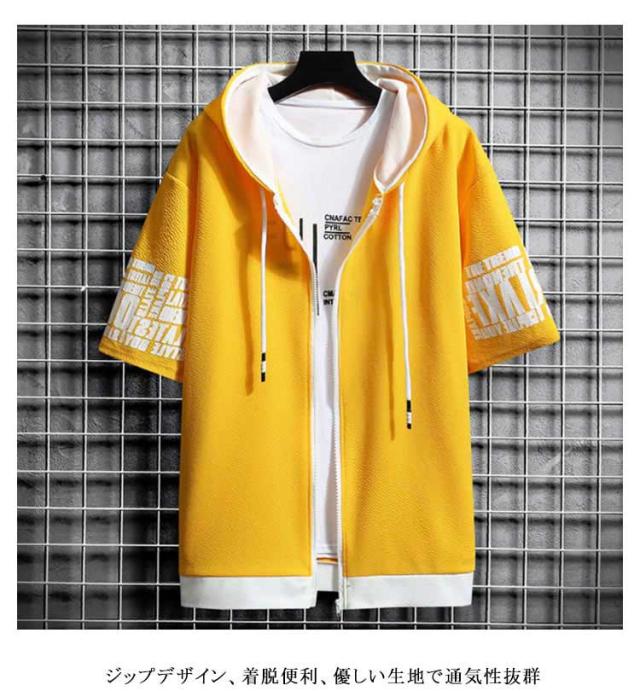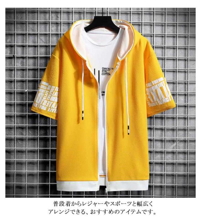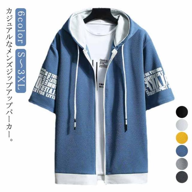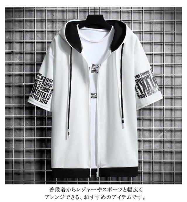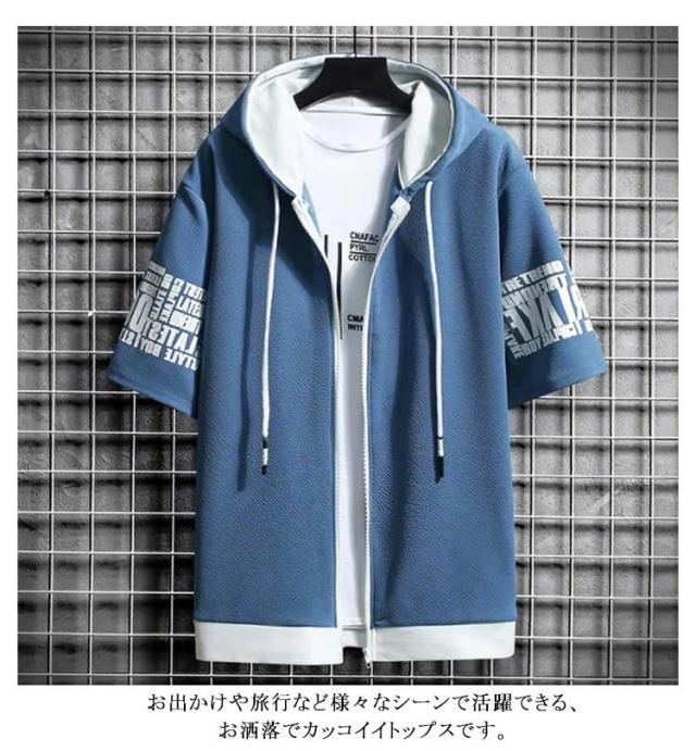 薄手 パーカー 半袖 フード付き スウェットパーカー 春夏 トップス メンズ カジュアル トレーナー おしゃれ 秋 大きいサイズ フード付きTシャツ メンズファッション Tシャツ 前開き 運動会 ファッション かっこいい