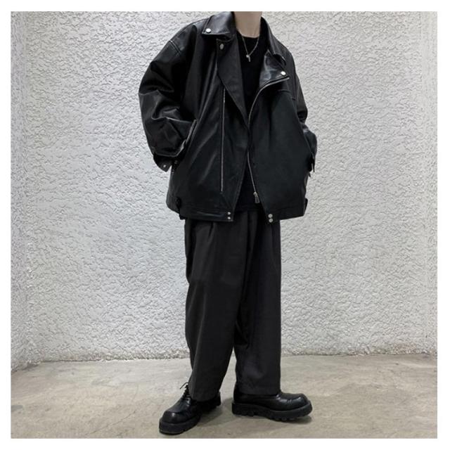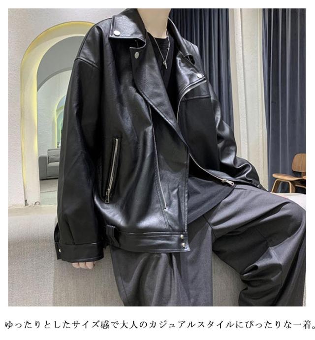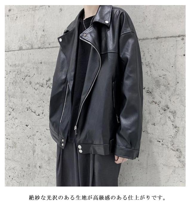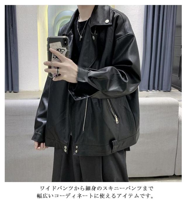 フェイクレザー オーバーサイズ レザージャケット 合皮 ゆったり ライダースジャケット PUレザー ビッグシルエット ジャンパー ショート丈 ライダースジャケット コート 革ジャン アウター ストリート メンズ ブルゾン 長袖 カジュアル 革ジャン 春 秋 冬 秋服