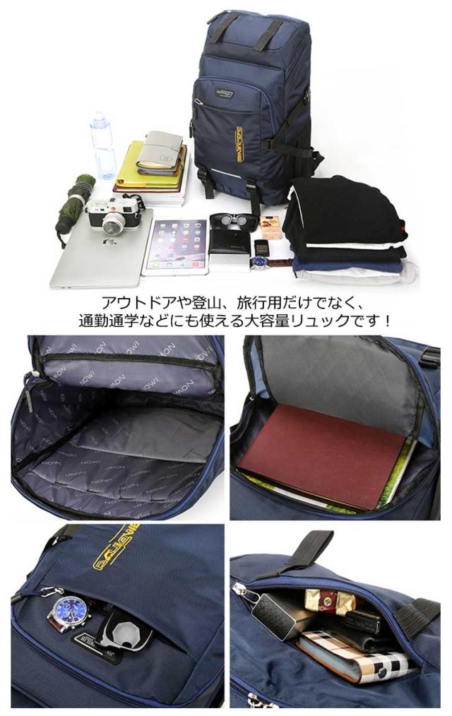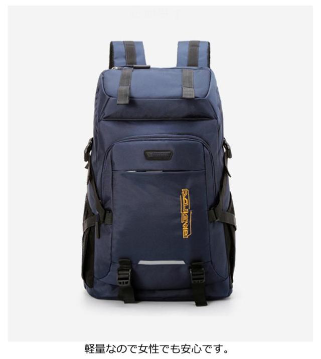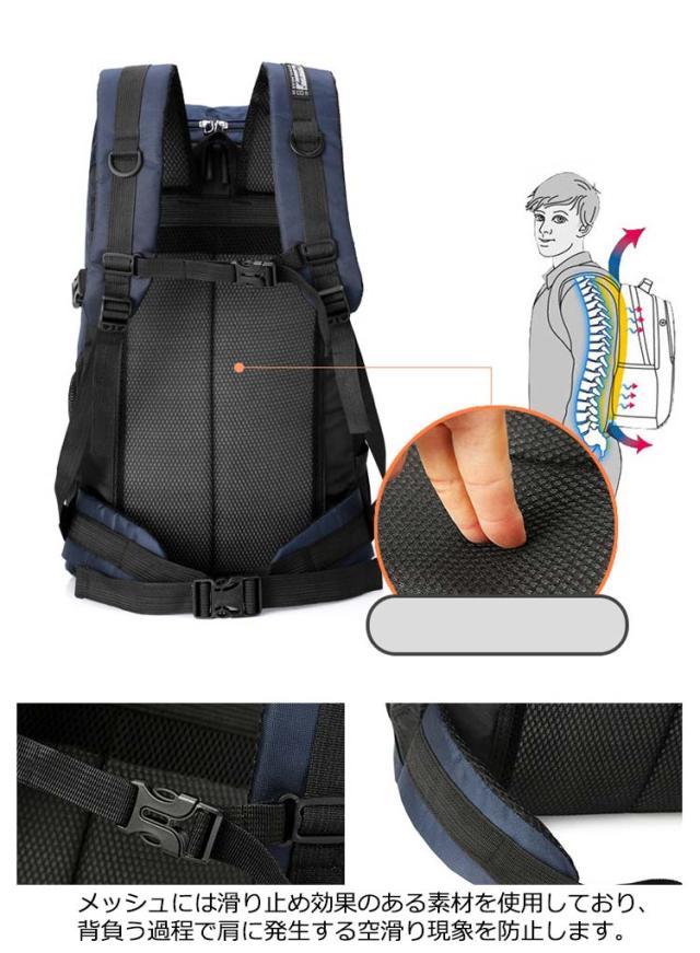 | 撥水加工!50L大容量アウトドアリュックサック。 大容量リュックサック、ポケットが多く、衣類・靴、及び他の登山用品を収納でき、登山や長期旅行に最適な大容量モデル。 メッシュには滑り止め効果のある素材を使用しており、背負う過程で肩に発生する空滑り現象を防止します。 背面の快適さを保証することを前提として、最大限の透湿性と摩擦耐性効果を保証します。 アウトドアや登山、旅行用だけでなく、通勤通学などにも使える大容量リュックです! 軽量なので女性でも安心です。 | |