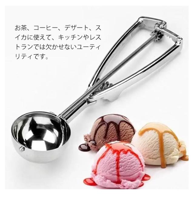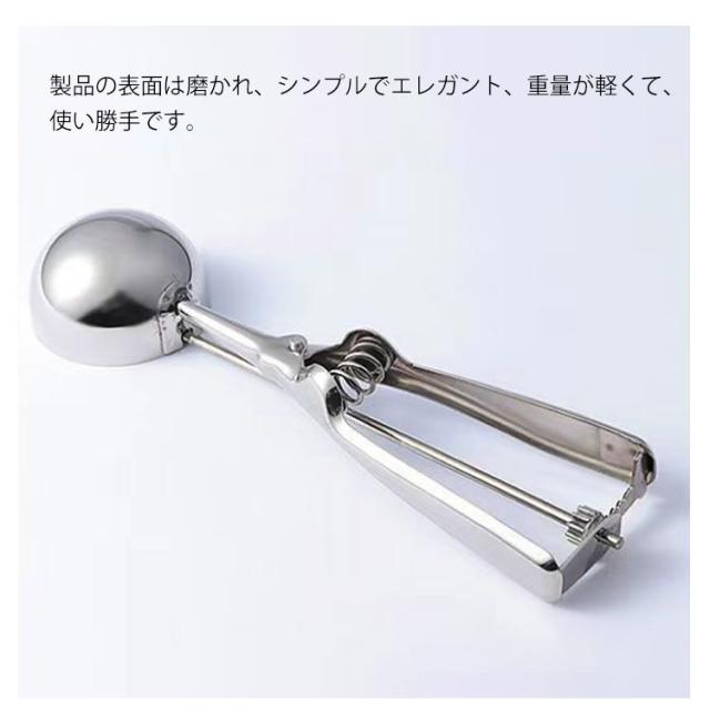 | ステンレスで作られて、優れた丈夫性があります。変色しなくて、変形しなくなりません。 ステンレス製品ですから、使えてから水で洗うことをして、綺麗になります。 お茶、コーヒー、デザート、スイカに使えて、キッチンやレストランでは欠かせないユーティリティです。 製品の表面は磨かれ、シンプルでエレガント、重量が軽くて、使い勝手です。 【用途&使い方】アイスクリームだけでなくポテトサラダや肉団子、ヨーグルト、 味噌や餃子のタネなど様々なものをすくう時に活躍する便利なアイススクープです。 すくった後にハンドルを握ると、金属ワイヤーがアイスと半球の間をツルンっと通り抜け、アイスを落としてくれます。 | |