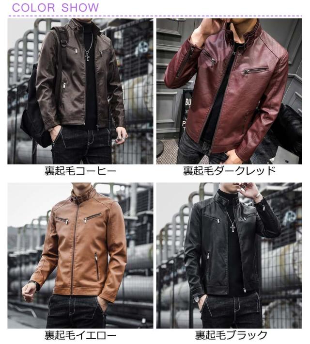 秋冬 レザージャケット メンズ 冬服 立ち襟 アウター ライダースジャケット メンズ 秋服 フェイクレザー 裏起毛 ブルゾン ジャンパー 【薄手&厚手】2タイプ ジャケット 革ジャン PUレザー 春服 裏ボア 防寒 バイクジャケット お洒落 大きいサイズ M-4XL