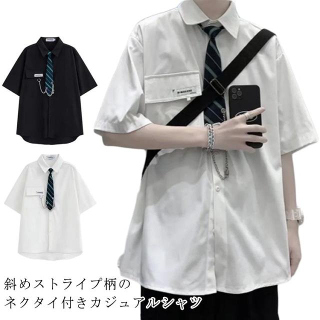 | 斜めストライプ柄のネクタイ付きカジュアルシャツ 軽やかで通気性に優れているのでサラッとした着心地です。 お出掛け用には勿論、ルームウェア、衣装、トレーニングなど多種多様に使えるので、1枚は持っておきたい便利な優秀アイテムです お出かけ、ショッピングモール、海、デート、特別な日、記念日、クラブ系、原宿系ファッション、ダンスやEDM バンド チーム 文化祭やカーニバル、スケーターファッションにもオススメです | |