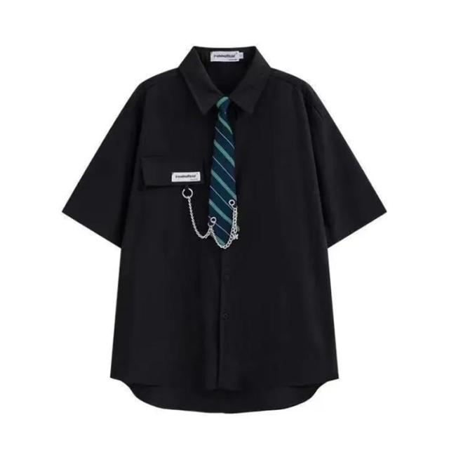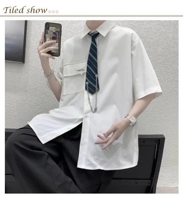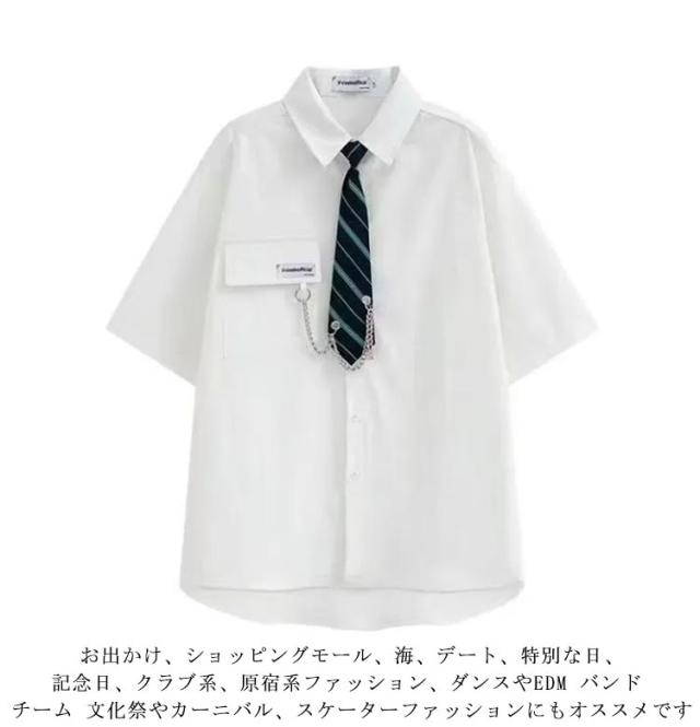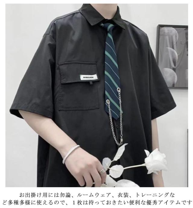 シャツ ネクタイ付き トップス ダンス ブラウス メンズ カジュアルシャツ ネクタイ付き 衣装 ヒップホップ 原宿系 ストリート系 モード系 暗黒系 レディース 韓国 春夏 秋冬 黒 ブラウス ユニセックス ゆったり オーバーサイズ