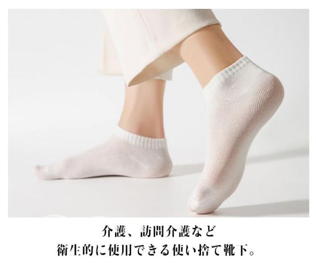 | 3足入り 通気性抜群 衛生的に使用できる使い捨て靴下 介護、訪問介護など衛生的に使用できる使い捨て靴下。 靴屋さんでの靴試着時の貸し出し用としても最適です。 足首はしめつけず履き口は弾力ゴムを利用。 ポリエステル素材でとても薄く履き心地が良い。 災害時の備え、旅行、出張、介護、入院、キャンプなど。様々な場面で活躍してくれる便利グッズです! | |