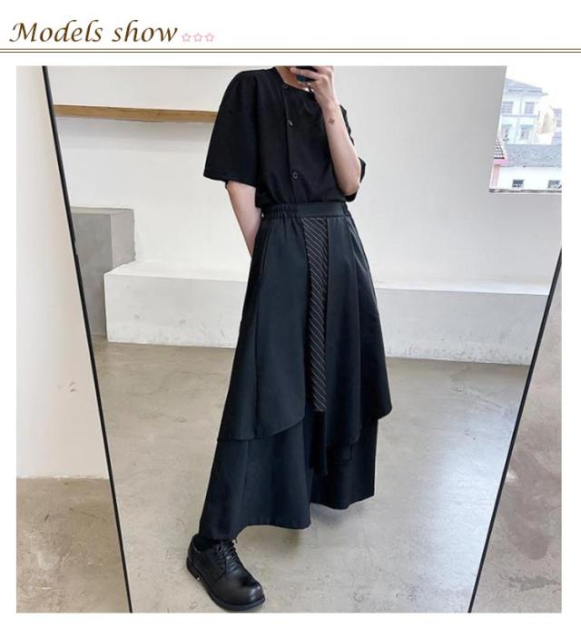 袴パンツ サルエルパンツ メンズ 和風 ワイドパンツ 春 夏 ビッグシルエット ウエストゴム ゆったり 袴パンツ モード系 アシンメトリー 和式ズボン 大きいサイズ ダンス衣装 ボリューム フレア サルエル ユニセックス