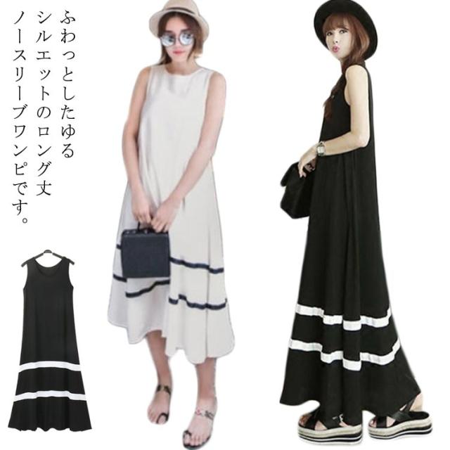 ワンピース おしゃれ ノースリーブ ボーダー Aライン 体型カバー 大きいサイズ ルームウェア ダンス衣装 ゆったり ボーダー シンプル きれいめ マキシ丈 上品 カジュアル マタニティ