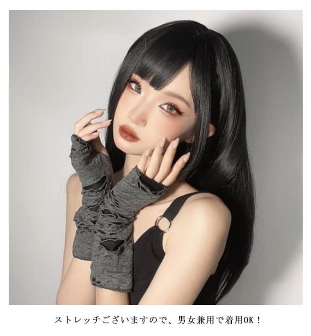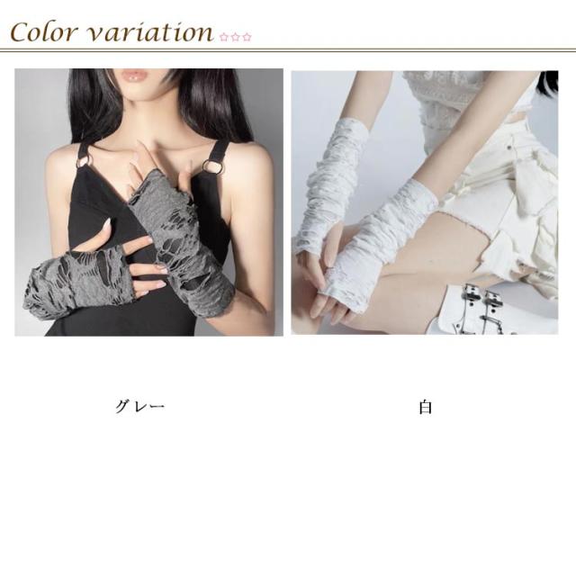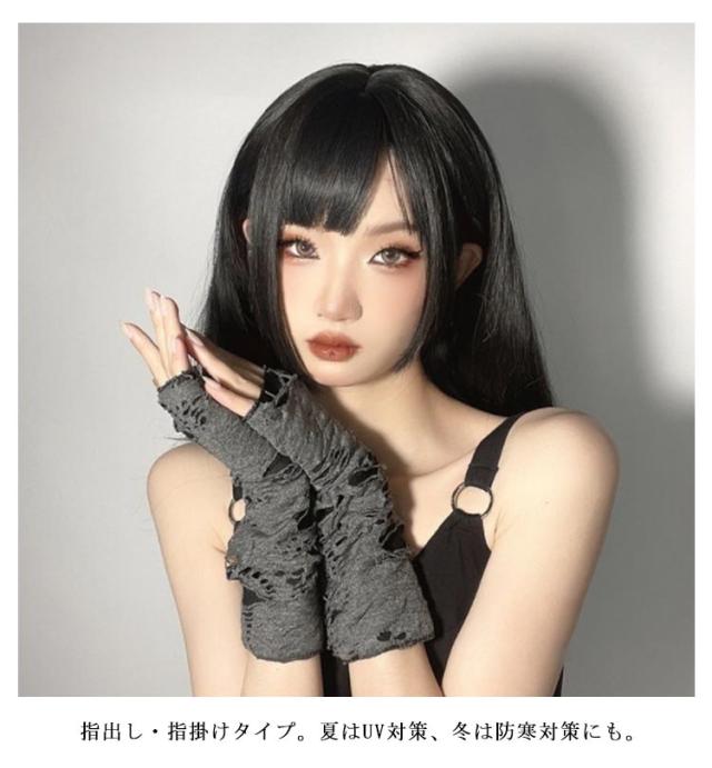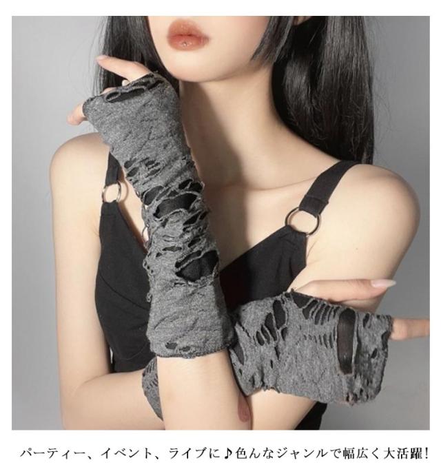 アームカバー コスチューム ユーズド加工 ダメージ加工 ゴシック パンク グレー 指なし 量産型 コスプレ ダメージ加工 メンズ レディース アームウォーマー 仮装 腕カバー 地雷系 手袋 病みかわ 韓国 伸縮性 コスプレ原宿系 y2k