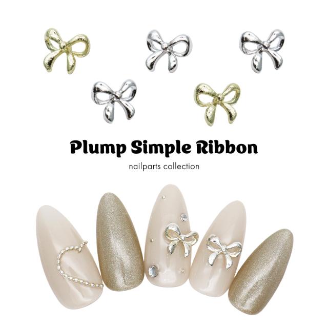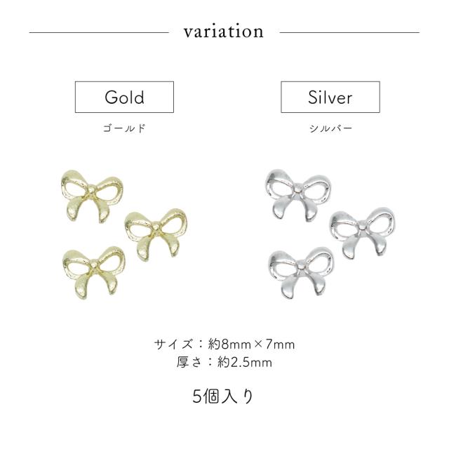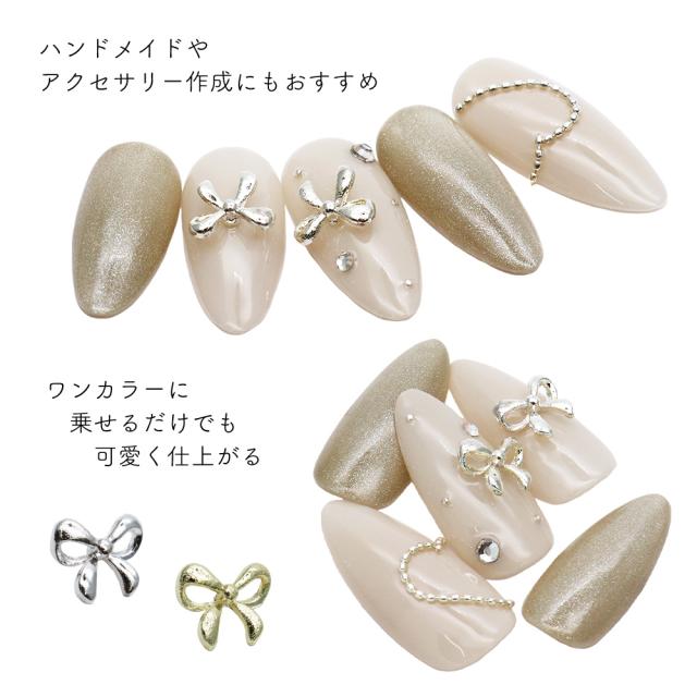 ネイルパーツ ぷっくりシンプルリボンパーツ [ゴールド 金/シルバー 銀] 5個入り