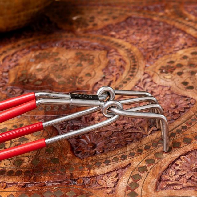 こちらはインドの「Pakkad(パッカド)」と呼ばれる鍋つかみです。インドでは、取っ手のないバゴーナー・パティラ、ハンディといった鍋がよく使われます。取っ手がないことで、鍋は積み重ねやすく、収納スペースを有効活用できます。そういった取っ手のない鍋たちを加熱して、移動させたりする際に登場するのが、こちらの鍋つかみです。サイズ感もちょうど良い大きさ。ペンチなどと同じで、テコの原理により少ない力でホールドされるので、大きめの鍋も楽に動かすことができます。